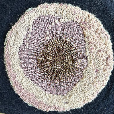 Hand-spun, naturally dyed alpaca yarn and seed beads on reclaimed wool felt 12'x12'