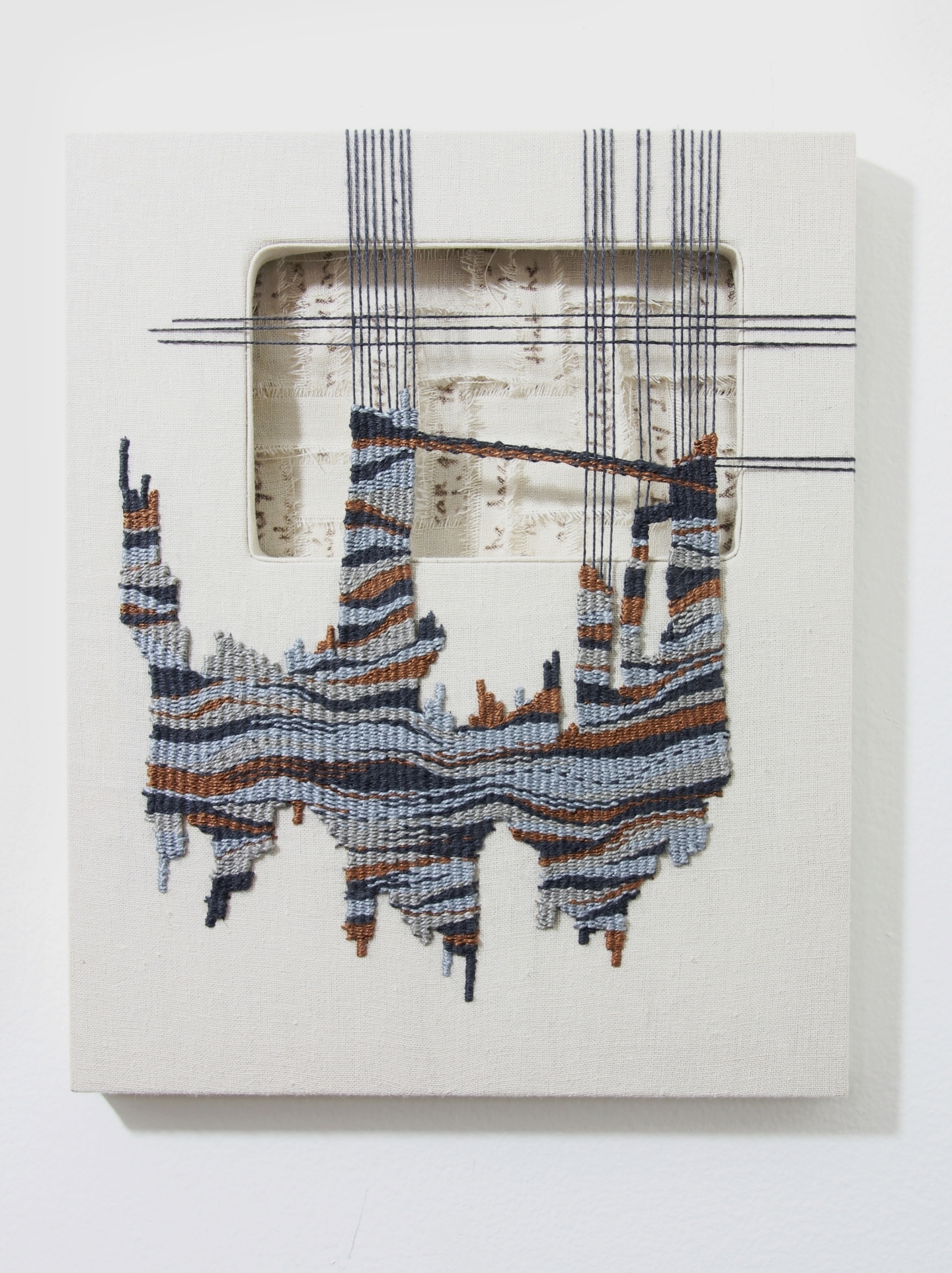Linen, cotton, and nettle yarn, linen fabric, and canvas 22" x 28" x 1"