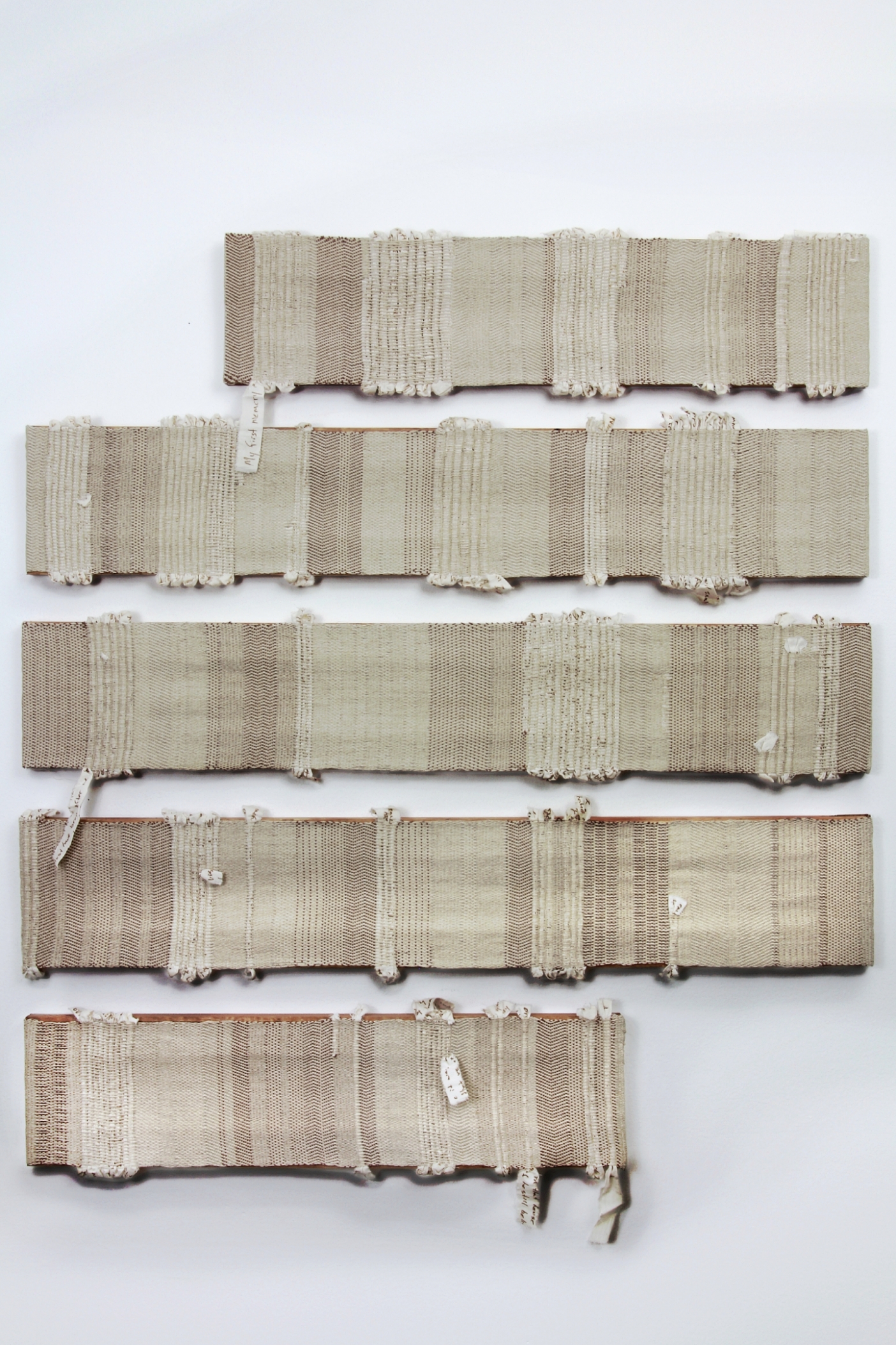 Linen and cotton yarn, wood frames, and journal excerpts 30"x25"x1"