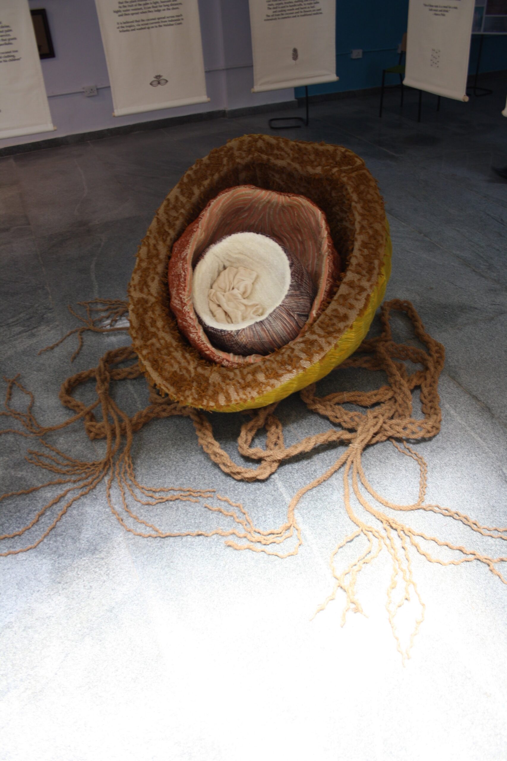 Handwoven textiles, cane, coconut fibre 48" x 36" x 30"