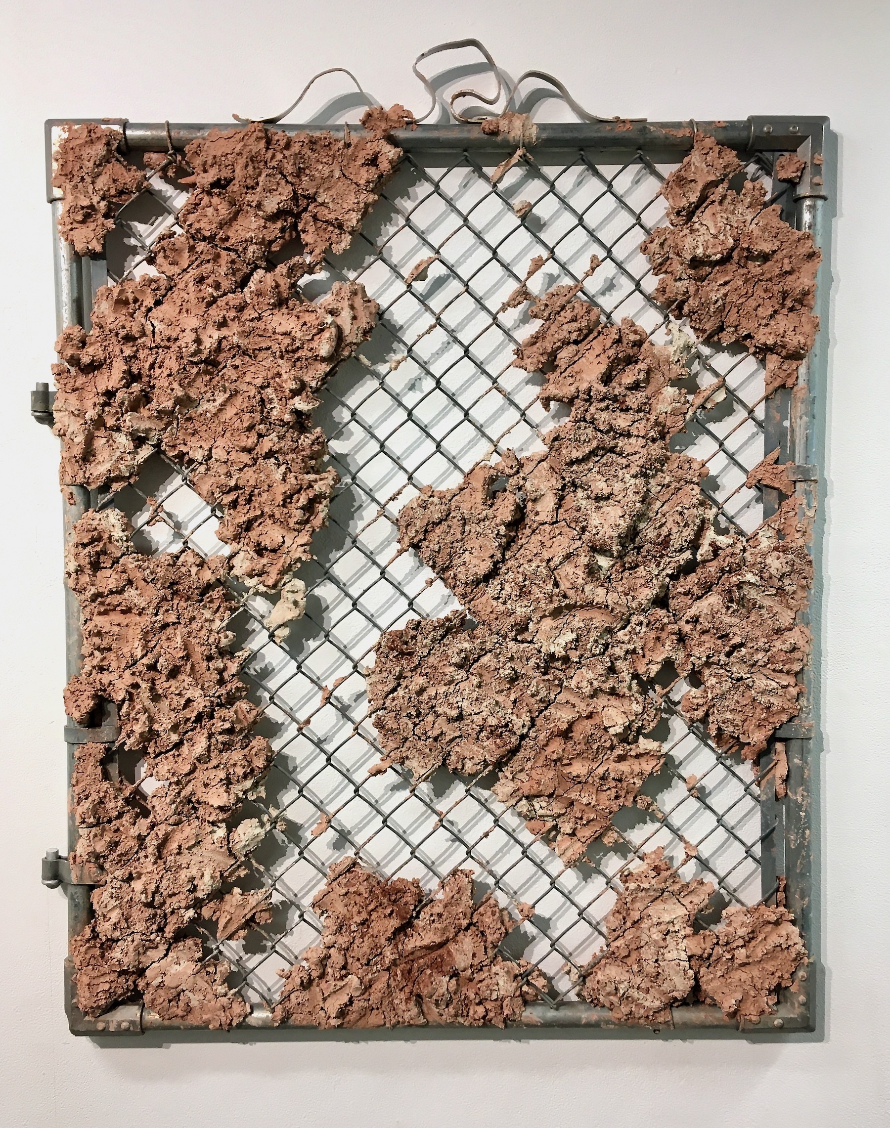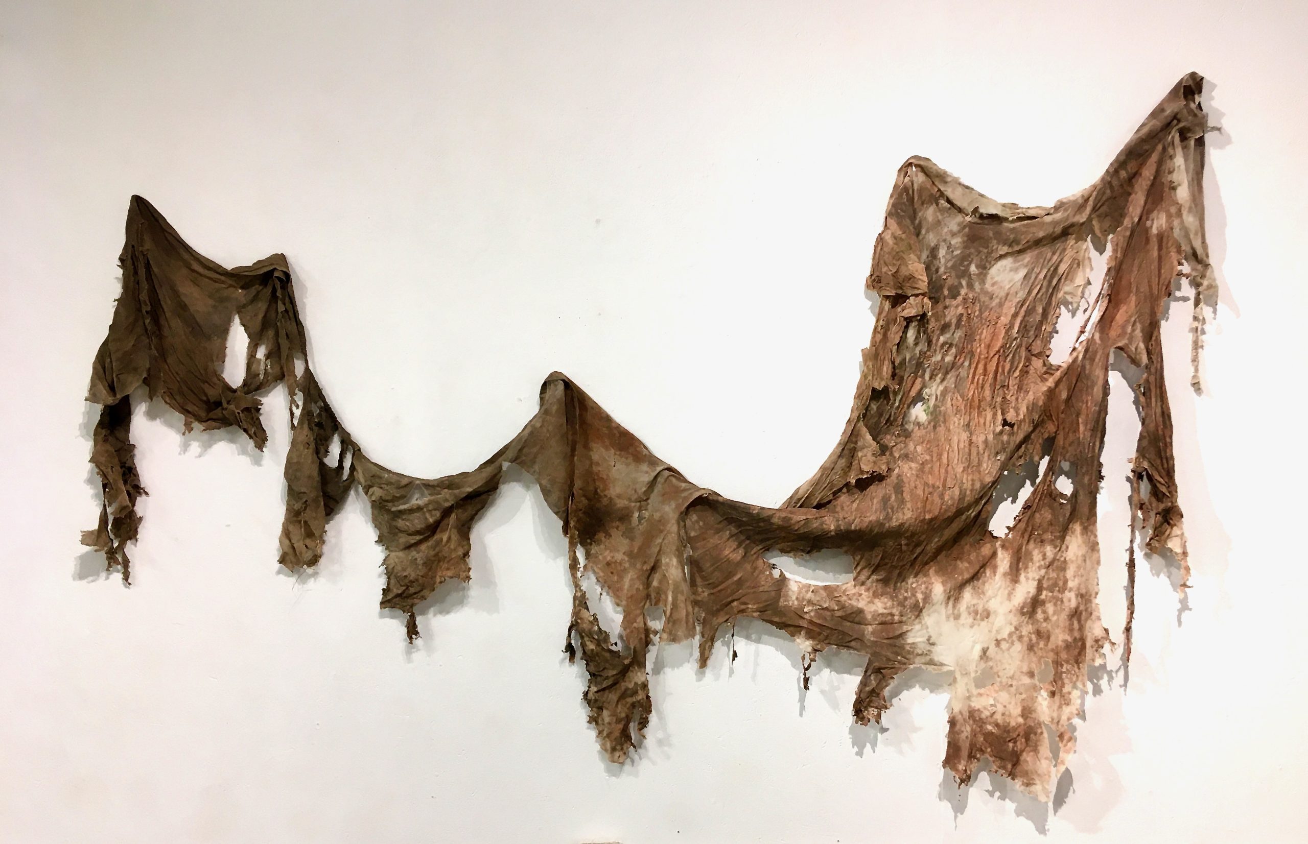 Found textile, wood ash, wild clay, and oil 66" x 108"