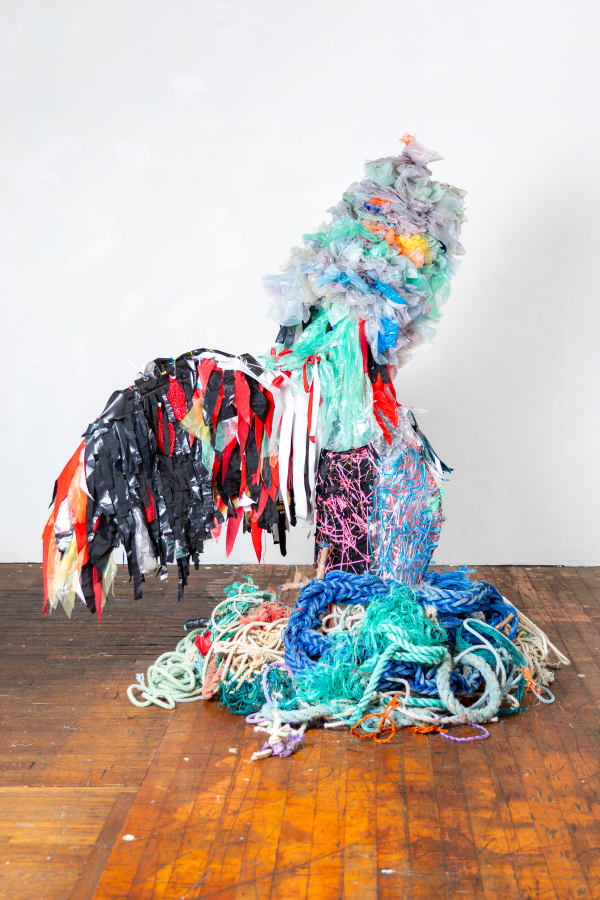 steel, collected single use plastic and marine debris 88”x98”x40”