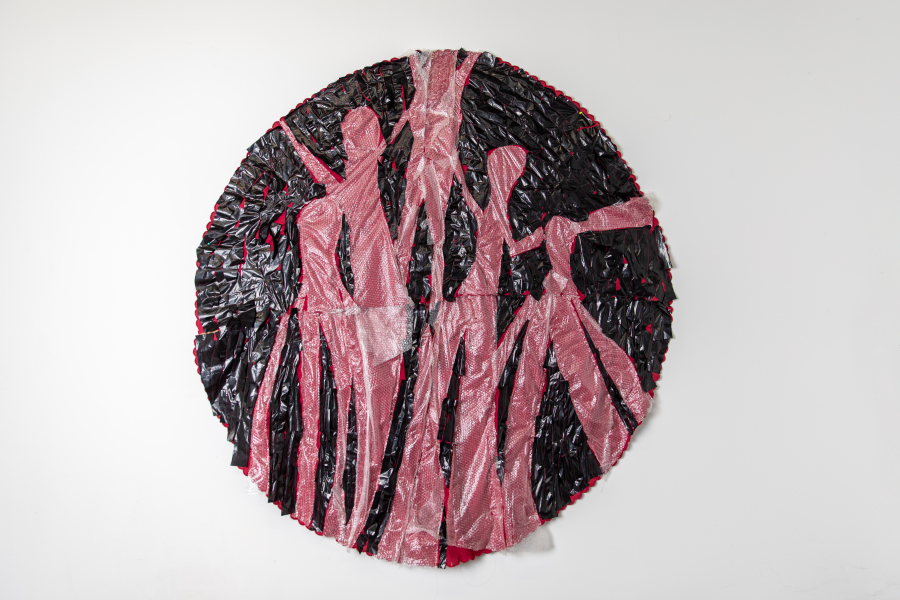 Plastic Ono confronts the permanence of single-use plastics by sewing them into human shadows. This work looks at humanity's inescapable imprint on the planet, urging reflection on the convenience of single use plastic versus its enduring environmental consequences.