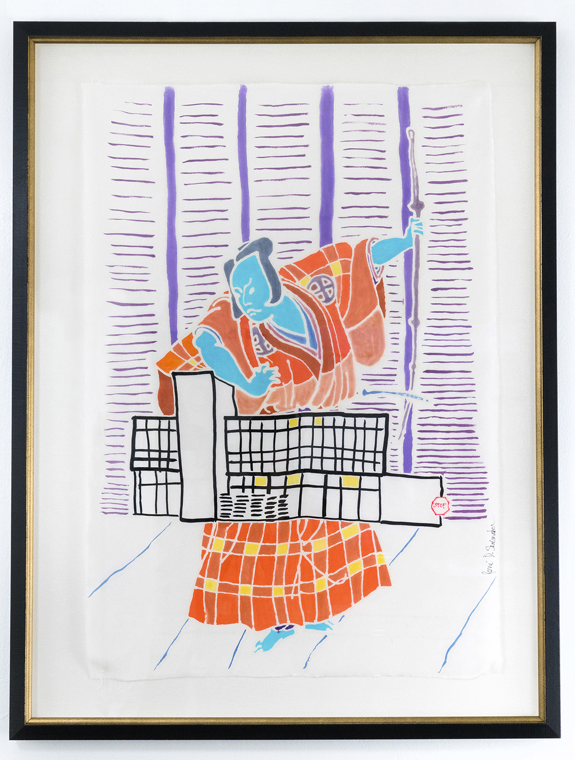 Hand-painted silk twill with silkscreen ink 40"h x 30"w