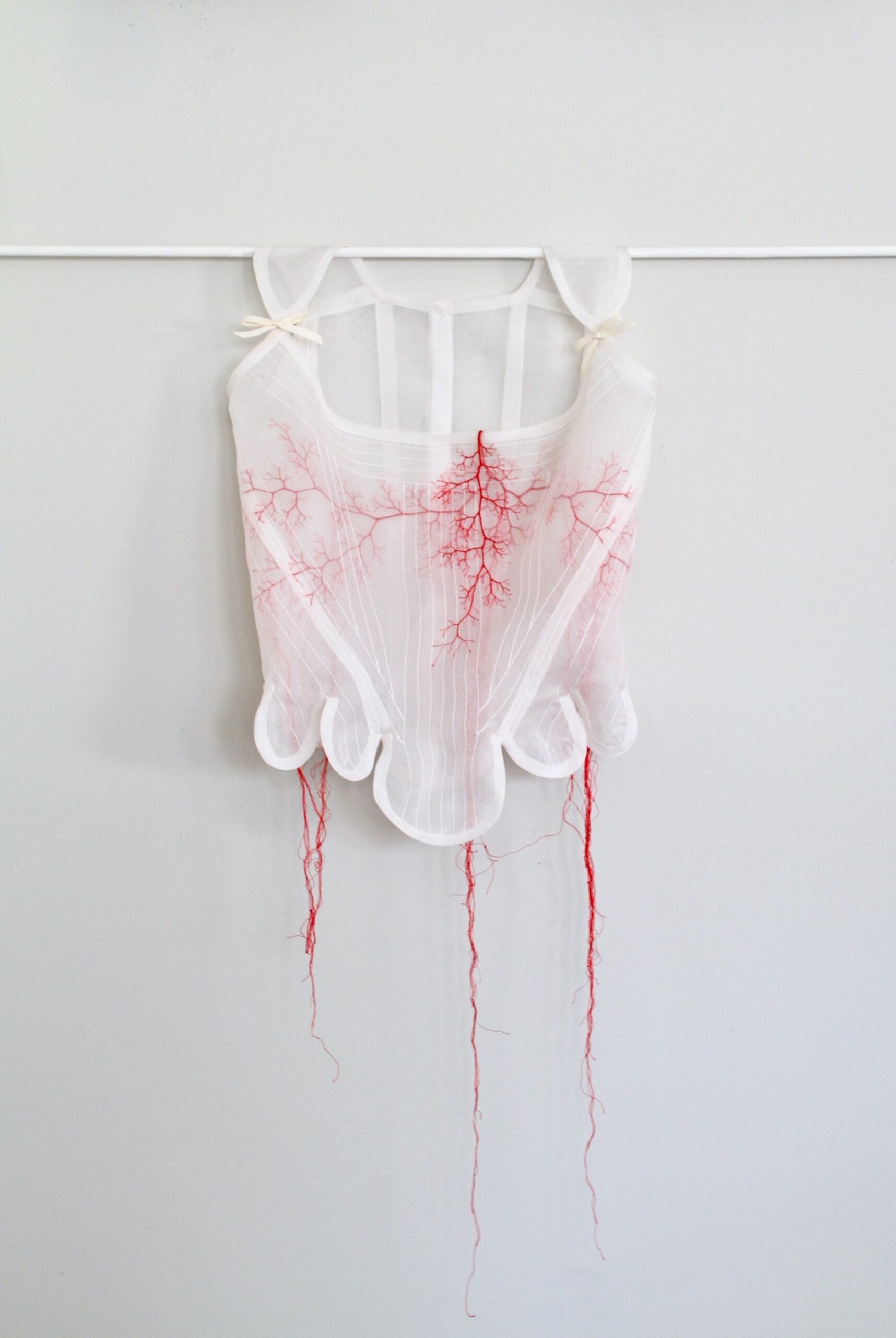 Doilie, Silk organza, Thread 19” x 14 ” x 2.5”