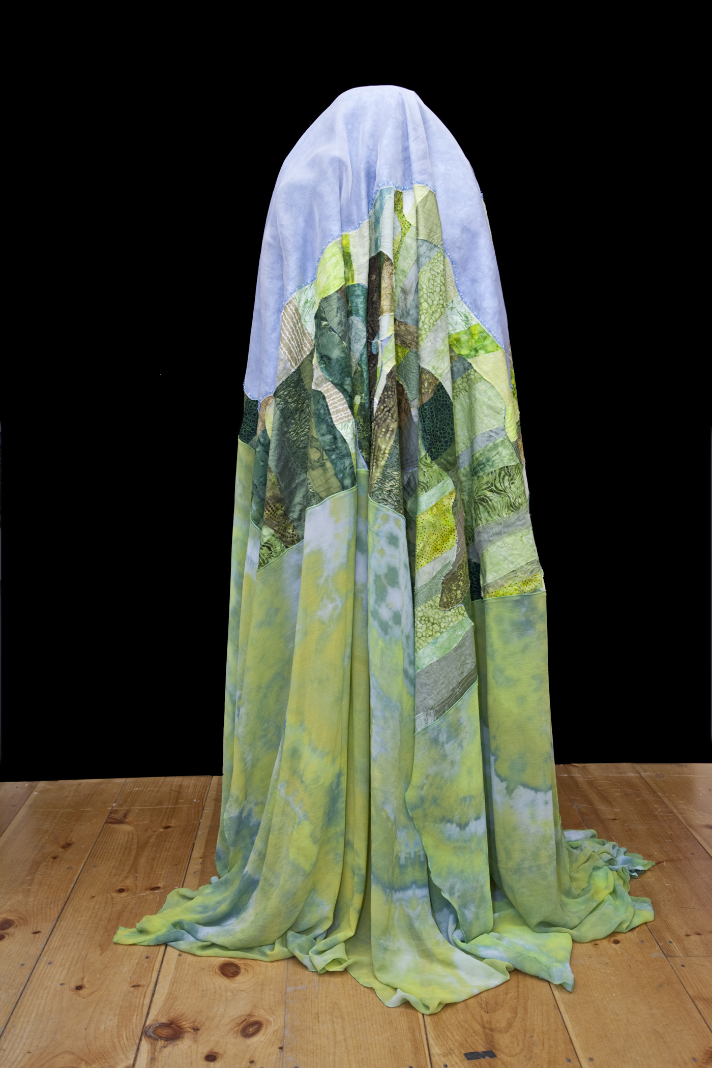 In Judaism, a traditional “wimple” is a ritual object that binds the Torah and holds it closed. It is made from the swaddling cloth of a newborn baby and is decorated with the names and dates of life events for generations of the family. It also includes a prayer of hope for the baby’s life. The wimple becomes a historical record. Community Wimple-See is a reinvention of a traditional Jewish wimple. It is used to bind a community together: physically, spiritually and through the act of truly seeing humanity’s destruction of the earth and the beauty that will be lost.