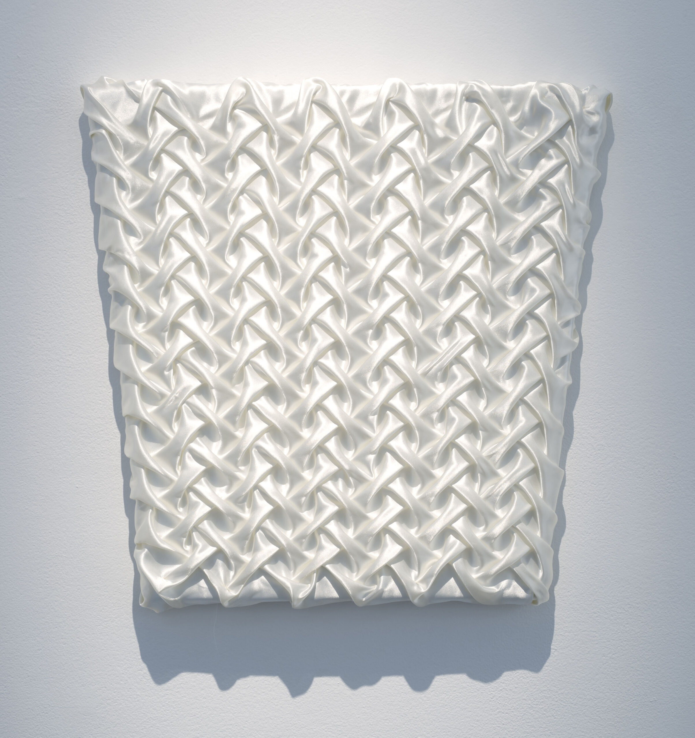 Plastic, embroidery floss, silk organza 50" x 56" x 4?