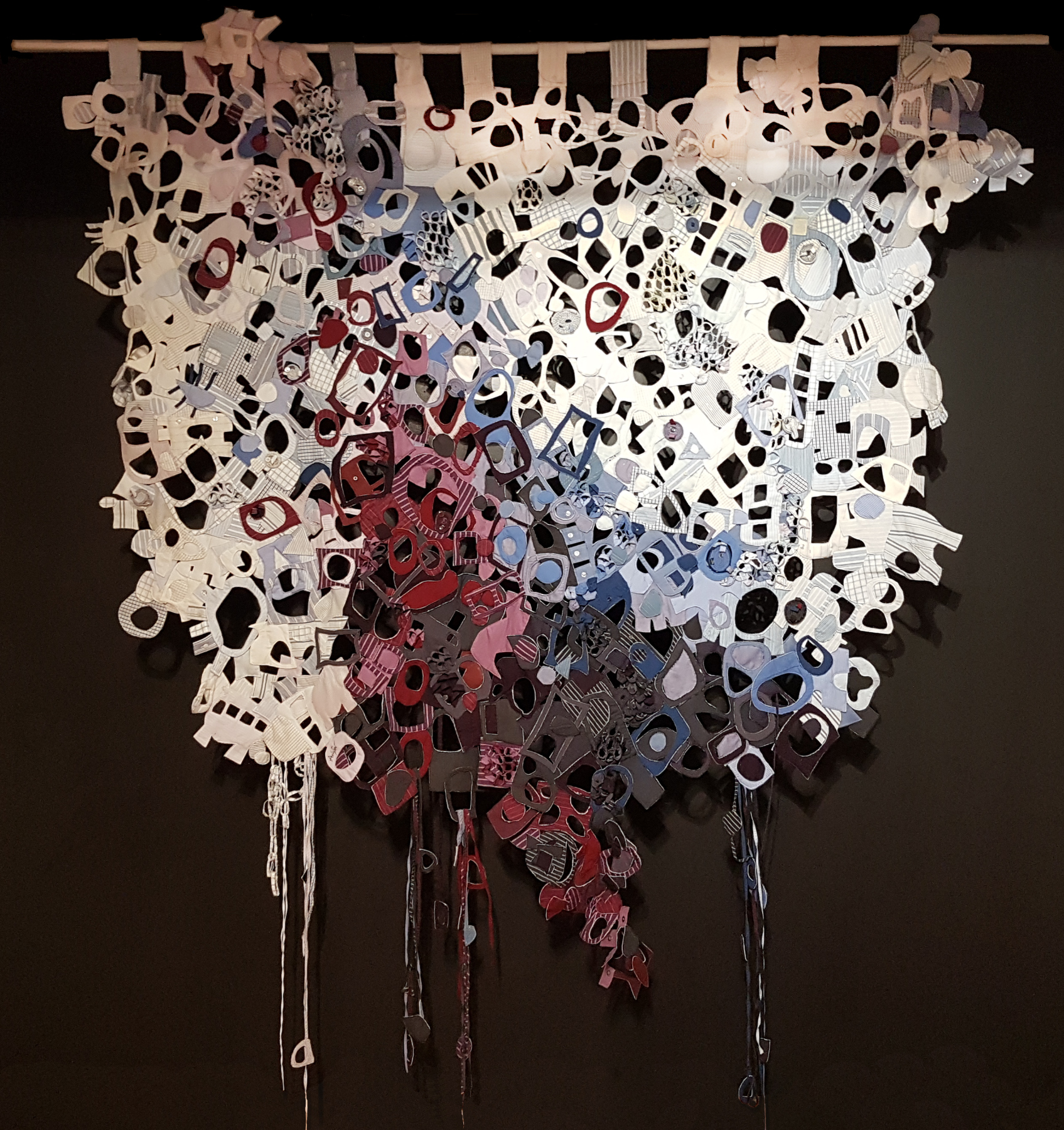 I want to raise awareness of the life and possibilities embedded in the textile waste we produce. This piece was made entirely of deconstructed men's dress shirts.