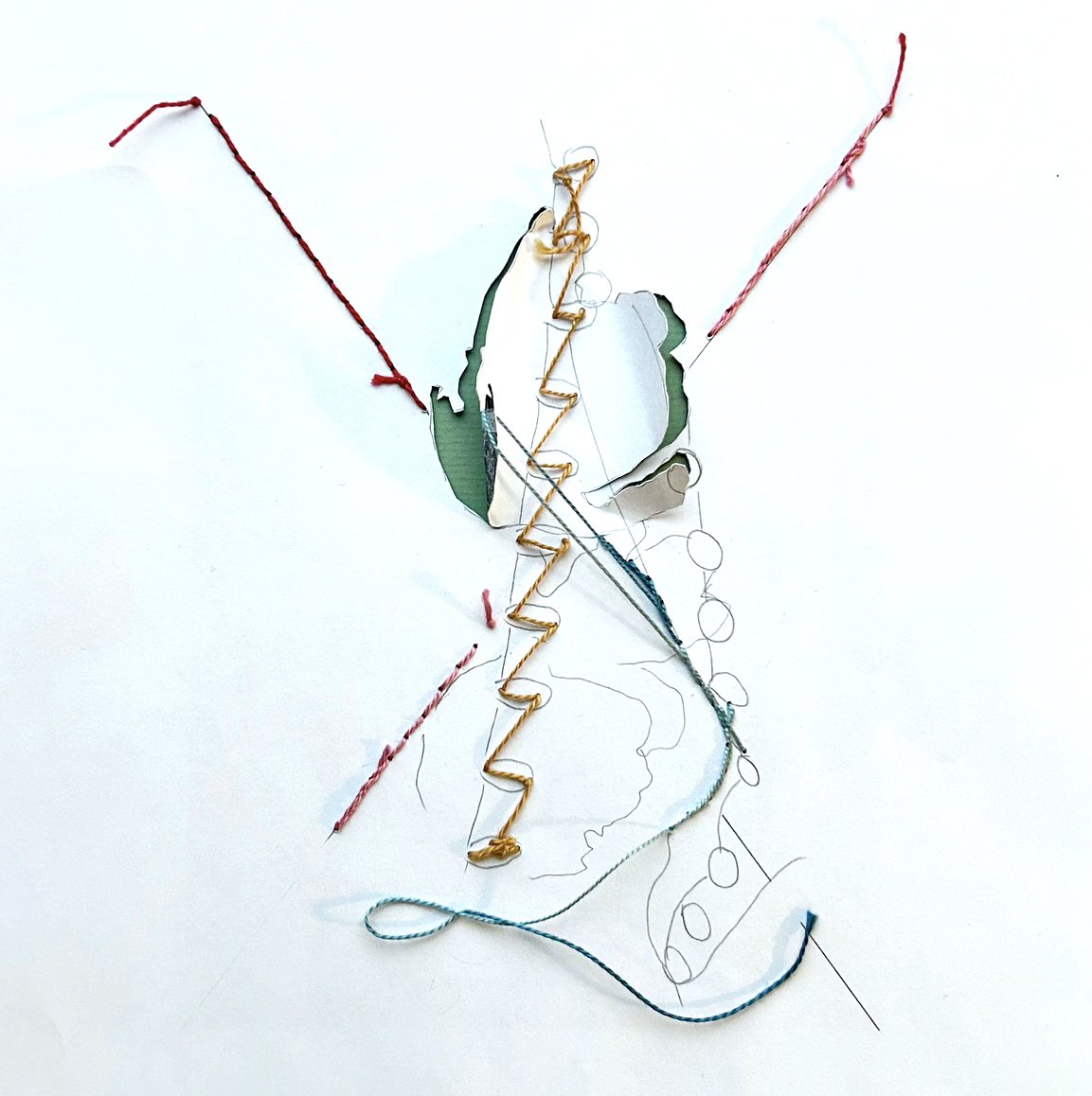 pencil and thread on cut laser-print 29.5 x 20.5 cm