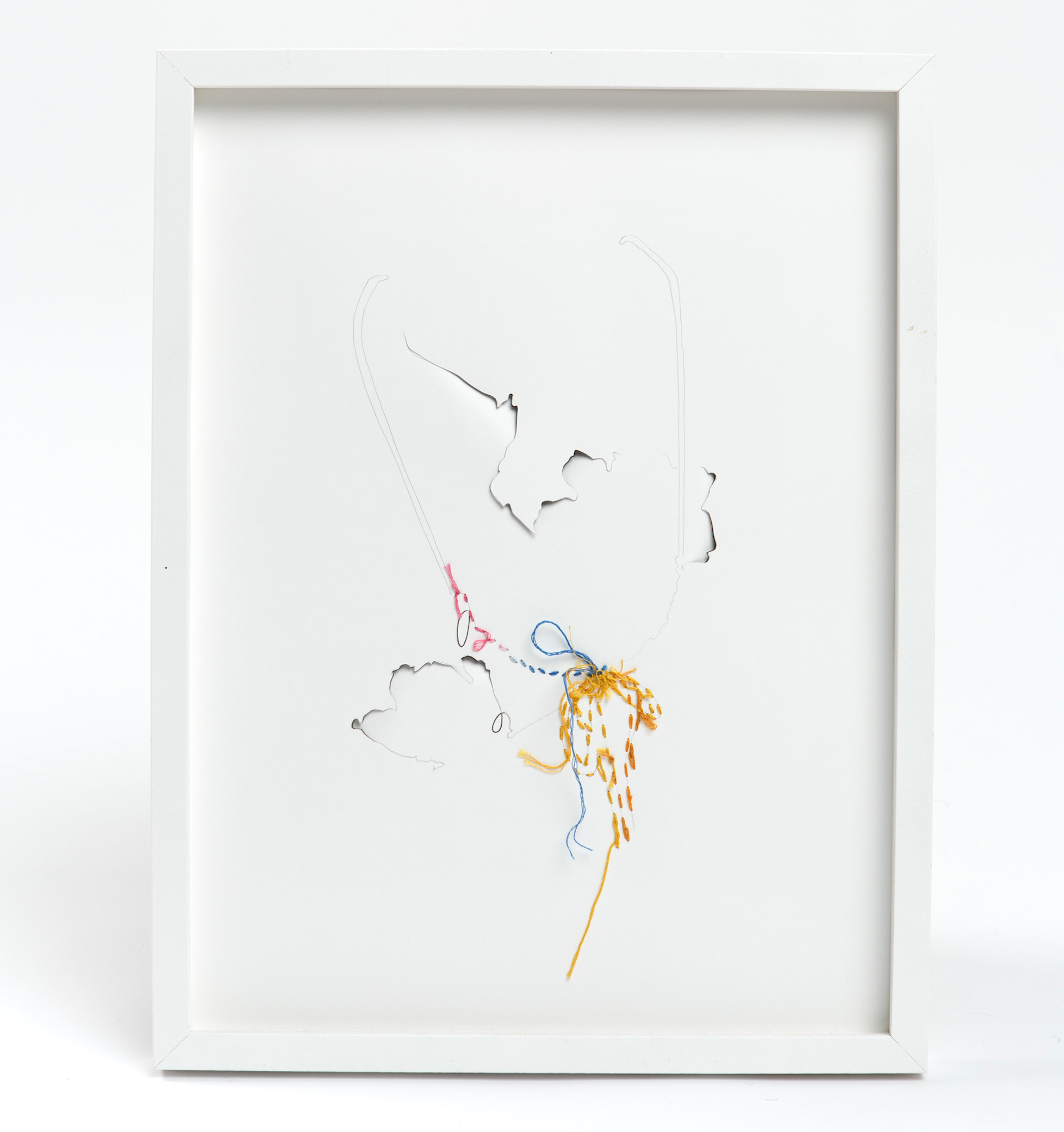 Thread and ink on cut ink jet print 39 x 29 x 1 cm