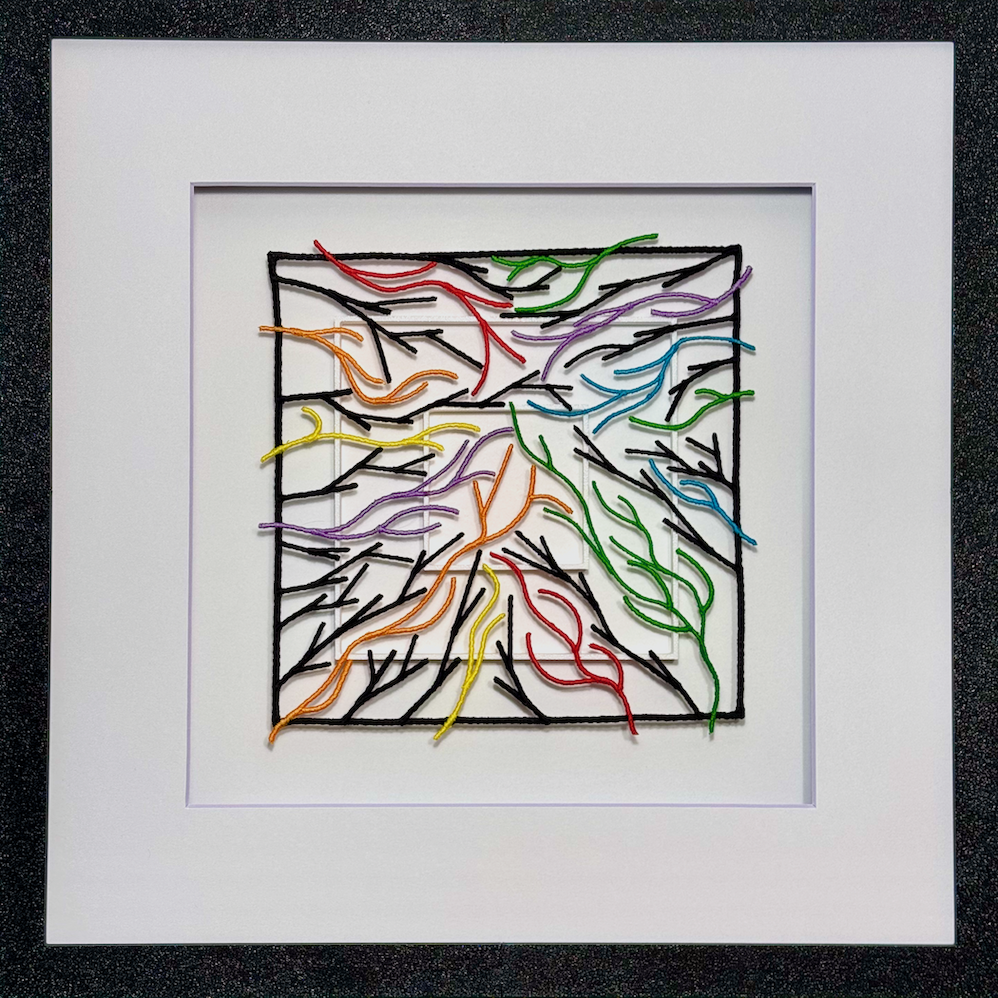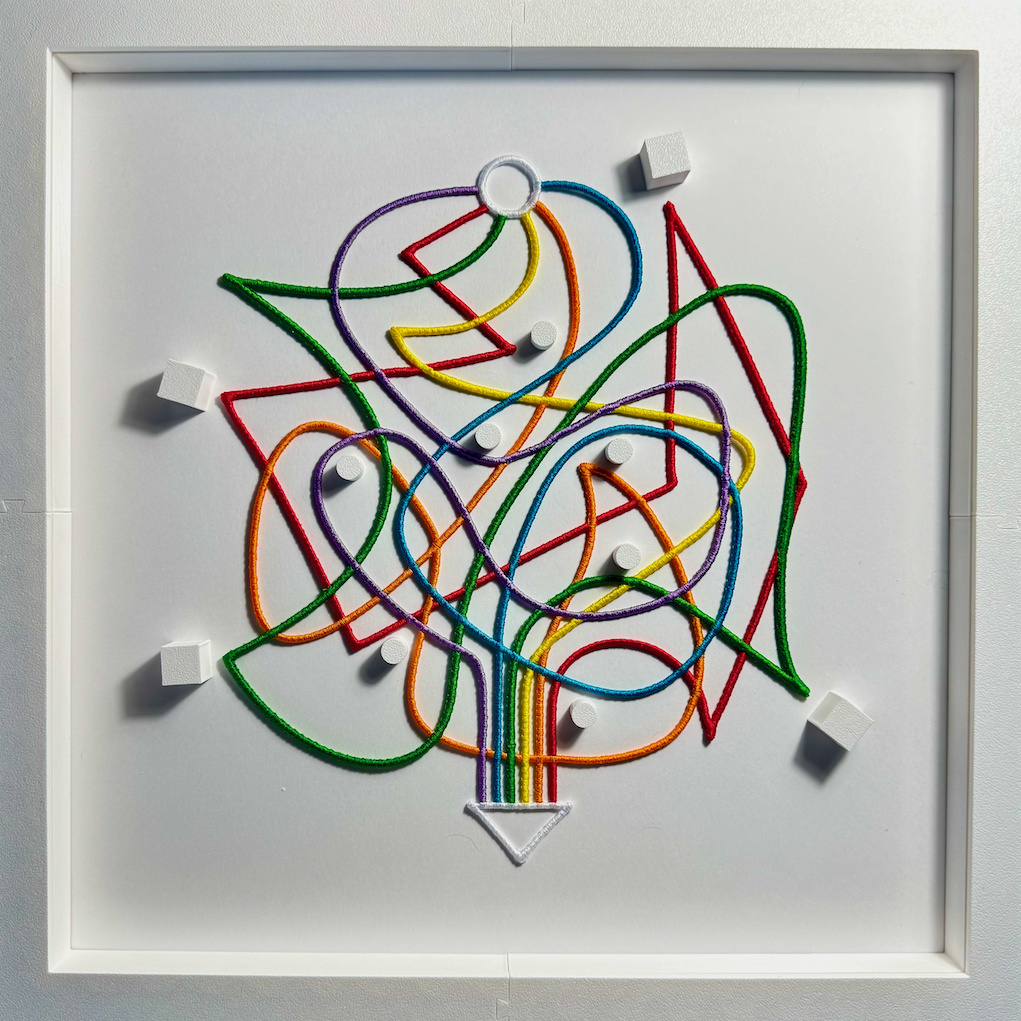 This work explores how order and meaning emerge through process rather than appearing fully formed. It begins with a compressed field of conflicting directions—an accumulation of possibilities without sequence or hierarchy. From that state, structure develops through repetition and constraint. The spiral is not drawn as a continuous curve, but assembled from many straight stitches, each a small, deliberate act that contributes to a growing coherence. From this formation, distinct paths unfold, each following its own rhythm while remaining connected to the whole. Growth here is uneven and non-linear: some elements resolve quickly, others take longer to find their place. Balance is not imposed through symmetry, but discovered through return, accumulation, and becoming.