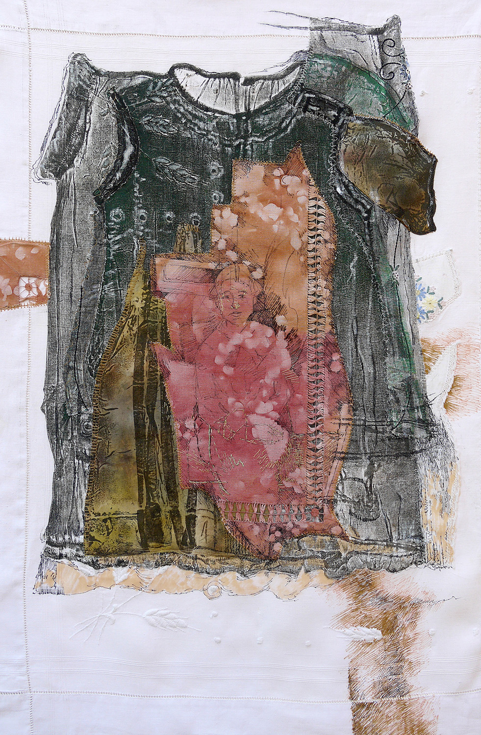 Mixed Media of fabric, intaglio, stitching 24 x 36"