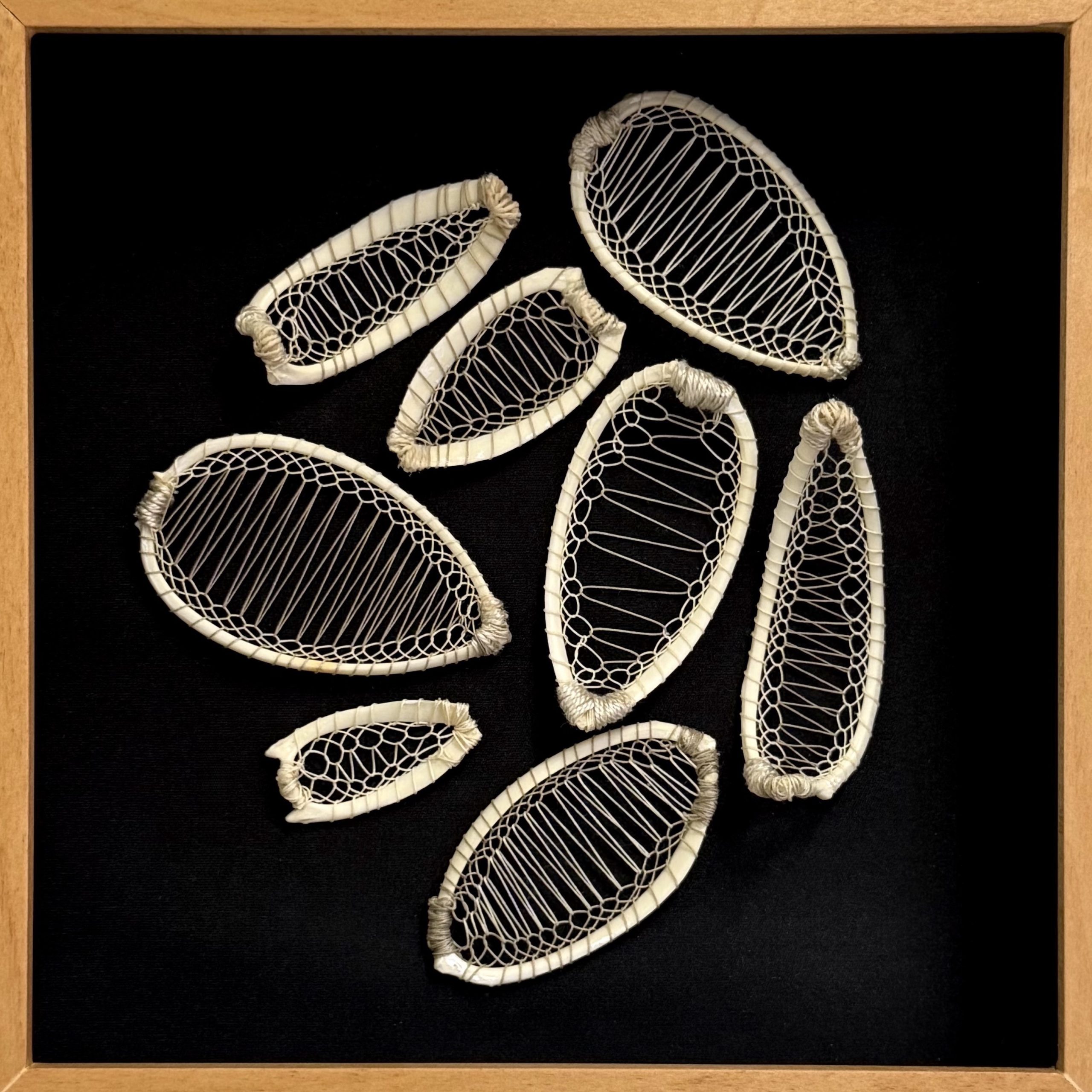 I created this piece with small animal bones (responsibly sourced) and thread, shaped into the form of lifeboats. Through crochet, wrapping, and knotting, these fragile remnants become vessels that carry both urgency and hope. The lifeboat is a symbol of survival, yet also a reminder that time is running out. By reimagining bone and thread into these delicate forms, I seek to honor what has been lost while calling attention to the precarious balance we now face as a collective.