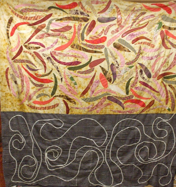 When I started this quilt about 6 years ago I had been making quilts for 26 years.  Since then I have made many quilts using bias tape, experimenting with all kinds of free-form sewing, trying new techniques in virtually every quilt. Making this quilt seemed to unlock something in my psyche – something that allowed me to make the kind of quilt I always thought I could make.