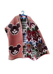 —Dilyara Kaipova (Tashkent, 1967) works with Uzbek textiles, reviving its centuries-long traditions, to make this medium relevant to current socio-cultural and ecological problems of the region and its post-modern history. Kaipova’s practice is located at the interaction of folk artisan traditions and contemporaneity. The artist designs original patterns and produces her ikat fabrics in collaboration with traditional masters. She also sources and uses vintage fabrics and embroideries–local fabrics of the Soviet period and ‘naive’ homemade embroideries. Kaipova’s textile work was first shown in Tashkent in 2016 and since then has been displayed in exhibitions in Kyrgyzstan, Russia, Georgia and the UAE.