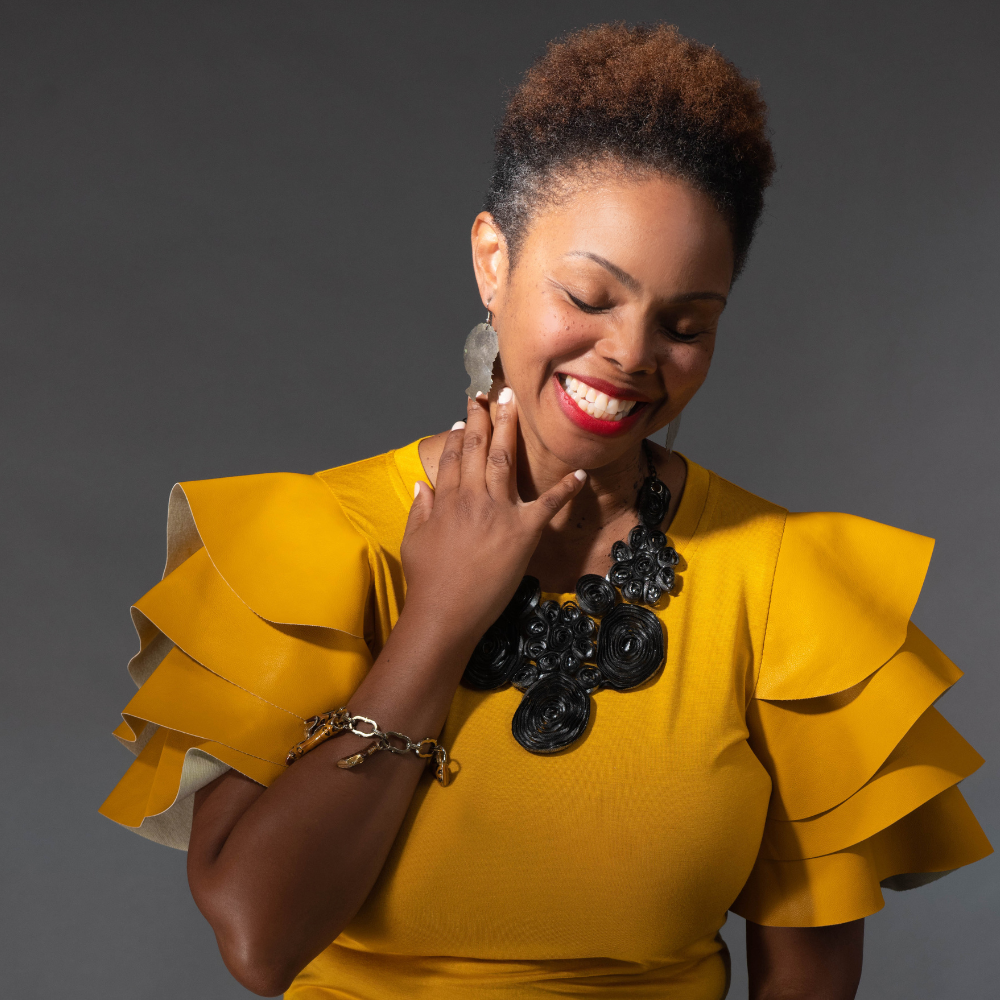 Theda Sandiford (she/her) is an award-winning self-taught fiber and installation artist based in Jersey City, NJ. Using racial trauma as a starting point, Theda juxtaposes various fibers with a variety of found materials using free form weaving, coiling, knotting, crochet, and jewelry making techniques. Meticulously collected materials and community donations, transformed by their collective memory become “social fabric,” weaving together contemporary issues and personal narratives. Community art making is key to her process. Theda curates’ multi-disciplinary experiences pairing people, sound and art making to create a safe space to explore themes such as equity & inclusion, sustainability, and personal wellbeing. Theda has shown extensively nationwide; including Expo Chicago, Untitled Art Fair, Governor’s Island, New Jersey Arts Annual and American Contemporary Craft: National Juried Exhibition. Among others, Theda received the 2020 Jersey City Arts, Visual Artist Award, the 2021 Fellowship in Craft from the New Jersey State Council on the Arts and 2022 Jersey City Arts Council Individual Artist Fellowship.