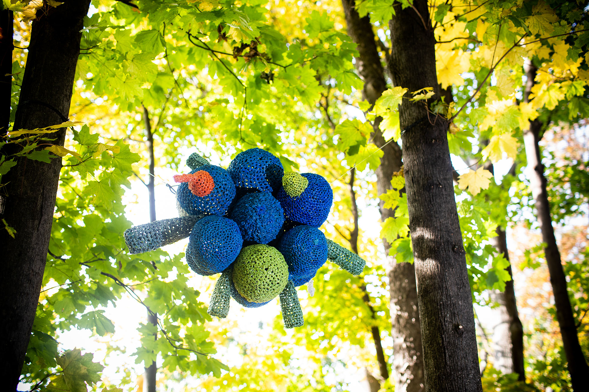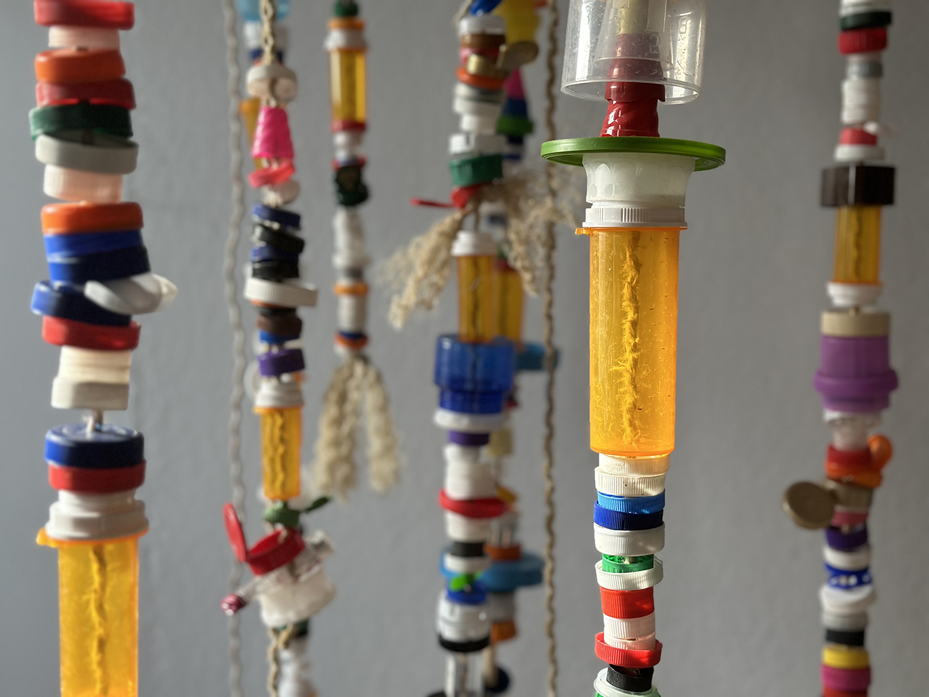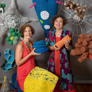 Michelle Lougee (she/her), artist and Cecily Miller (she/her), curator, came together when Cecily invited Michelle to be an artist-in-residence in Arlington, MA. Their goal was to develop an artist-led and collectively made public art project for the busy Minuteman Bikeway that would raise awareness of plastic waste. As a curator, Cecily was drawn to Michelle’s intricate sculptural installations, created by transforming plastic waste into paradoxical objects – at once seductive and repelling, uncanny and strangely familiar. Cecily wondered what would happen if Michelle was able to enlist community volunteers in scaling up her artwork so that it could have a visual impact in public space. At the same time, collaborative art making would provide a platform – from formal talks to intimate conversations -- for Michelle to share her reflections and research about the impact of plastic on people and the environment. The result – Persistence – was a huge success despite the impact of the pandemic. 38 sculptures created by more than volunteers were suspended in trees along the Bikeway. Heartened, Michelle and Cecily have gone on to organize projects with a similar philosophy and methodology: harnessing collective creation to challenge the seductive convenience of plastic.