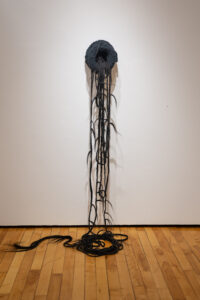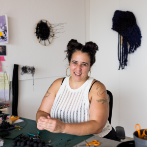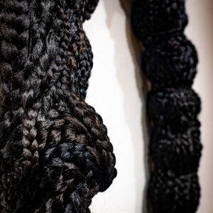 In Intertwining Identities, Verónica Pèrez will discuss their work as a community artist and their personal artistic practice. Using textile processes like braiding, weaving, and crocheting, combined with sculptural techniques, as well as unconventional material such as hair, Pèrez addresses themes of erasure, empathy, and ambiguity as a member of the diaspora.