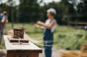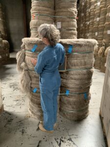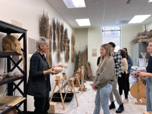 The Hemp Lab was initiated by Associate Professor Marianne Fairbanks (she/her) to focus on ways to use this locally grown, carbon sequestering crop as a raw material that holds sustainable solutions for a better social, ecological, economic and cultural future. Using hemp grown by the Ellison Lab, we transform the raw material into components – long line fibers, short fibers (tow), and hurd, —refining and combining them into new forms for both utilitarian and experimental outcomes. The Hemp Lab learns from processes used in the past to inform the future. Through hands-on learning and processing of the material we will design, prototype and test new products. Through making, we work to facilitate interactions based on participation and mutuality, growing knowledge and respect for the environment, sustainable materials, and design processes in order to create a regenerative future.