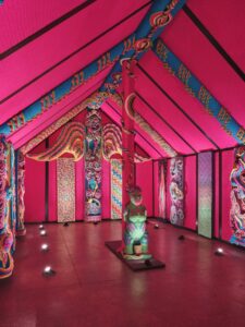 Rudi Robinson (Waikato/Ngāti Pāoa, Ngāruahine) (he/him) hails from the forestry town of Kaingaroa. Born with a chainsaw in hand, his early years were spent in the embrace of nature and the creative sanctuary of his backyard shed. His transition from the forests to the art of crochet has been a journey of discovery and learning. Meeting Lissy was the turning point where he swapped his chainsaw for a crochet hook, combining his love for making with the intricate art of crochet.