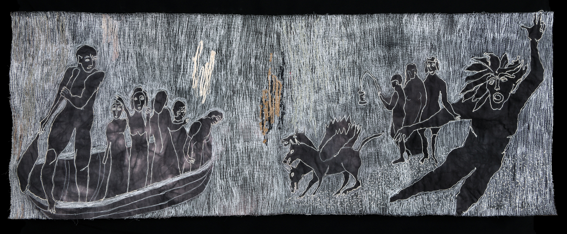 Hand and machine embroidery on cotton, polyester and cotton yarns (55 x 115cm)