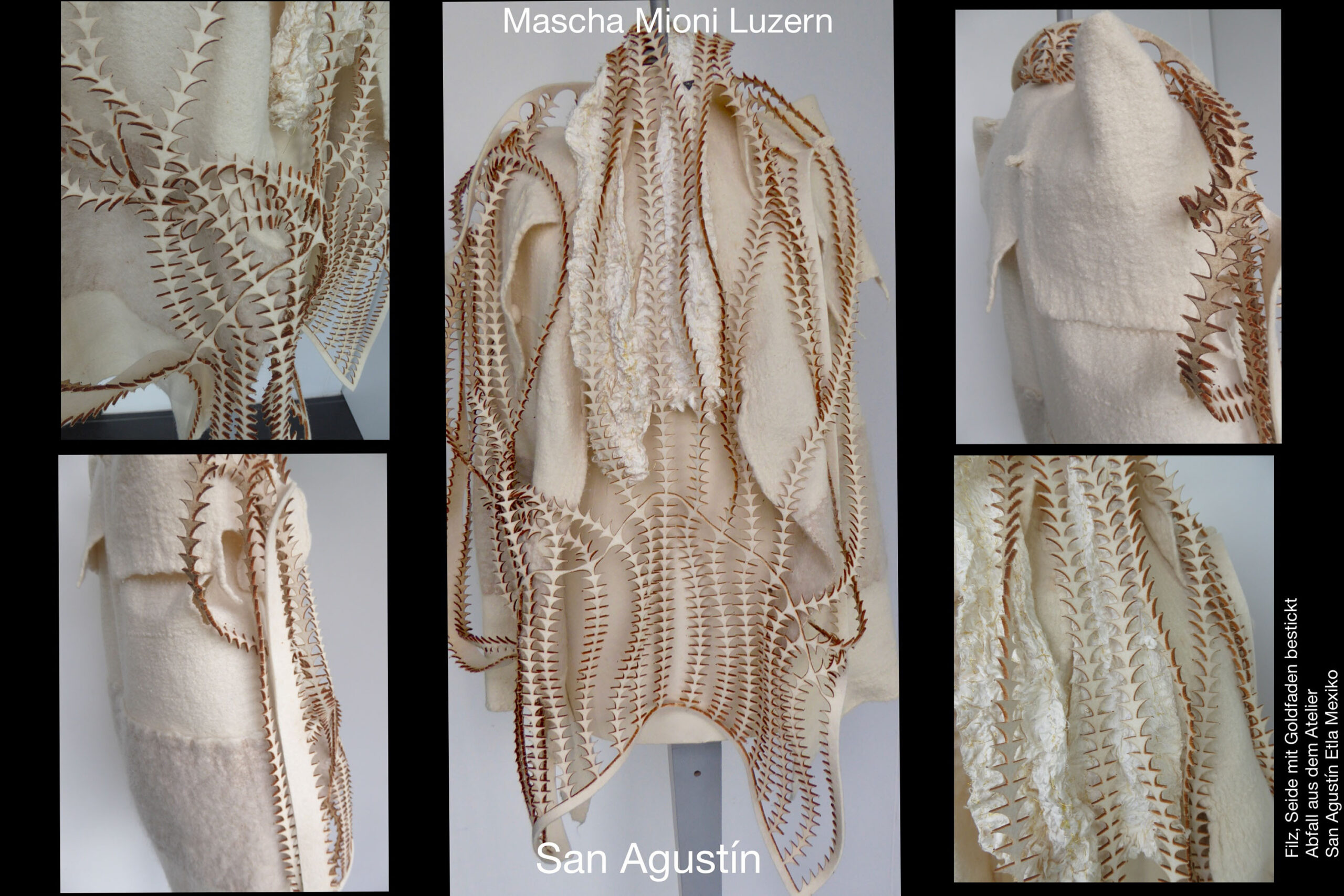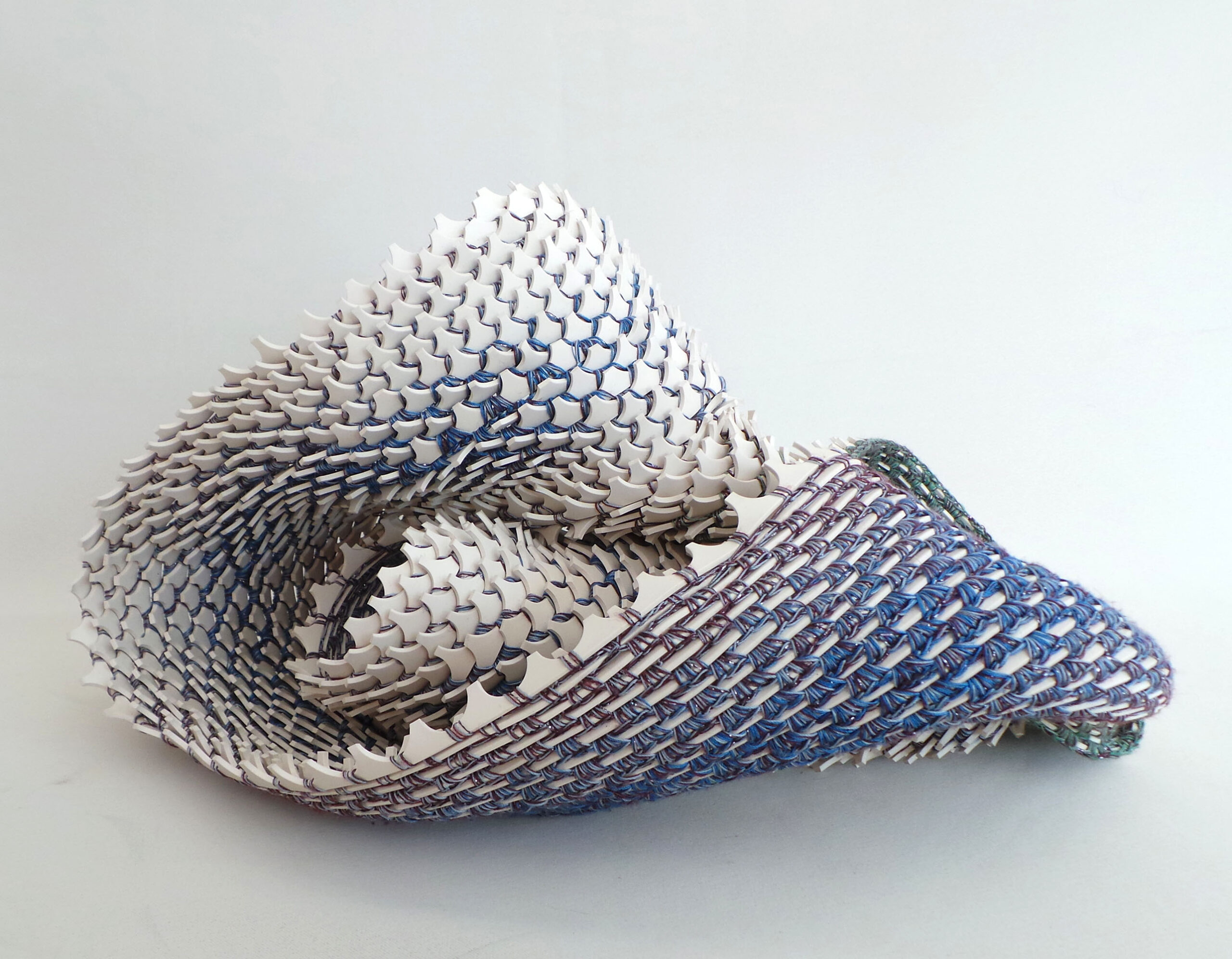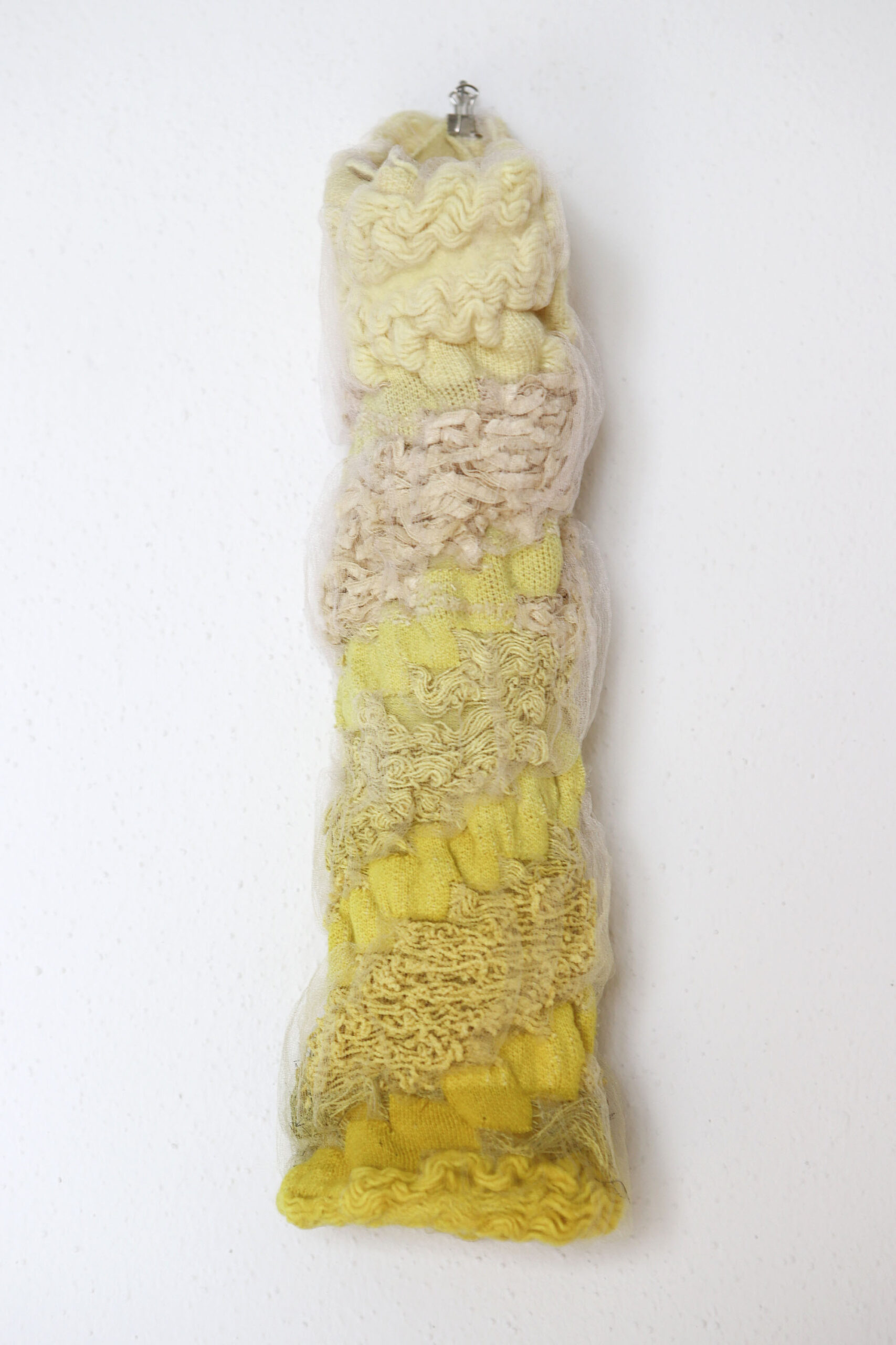 Inspired by the poem ‘Steps’ by Hermann Hesse. Digital machine knitting, natural dye (weld) to combine old and new techniques. (35 x 11 x 7cm)