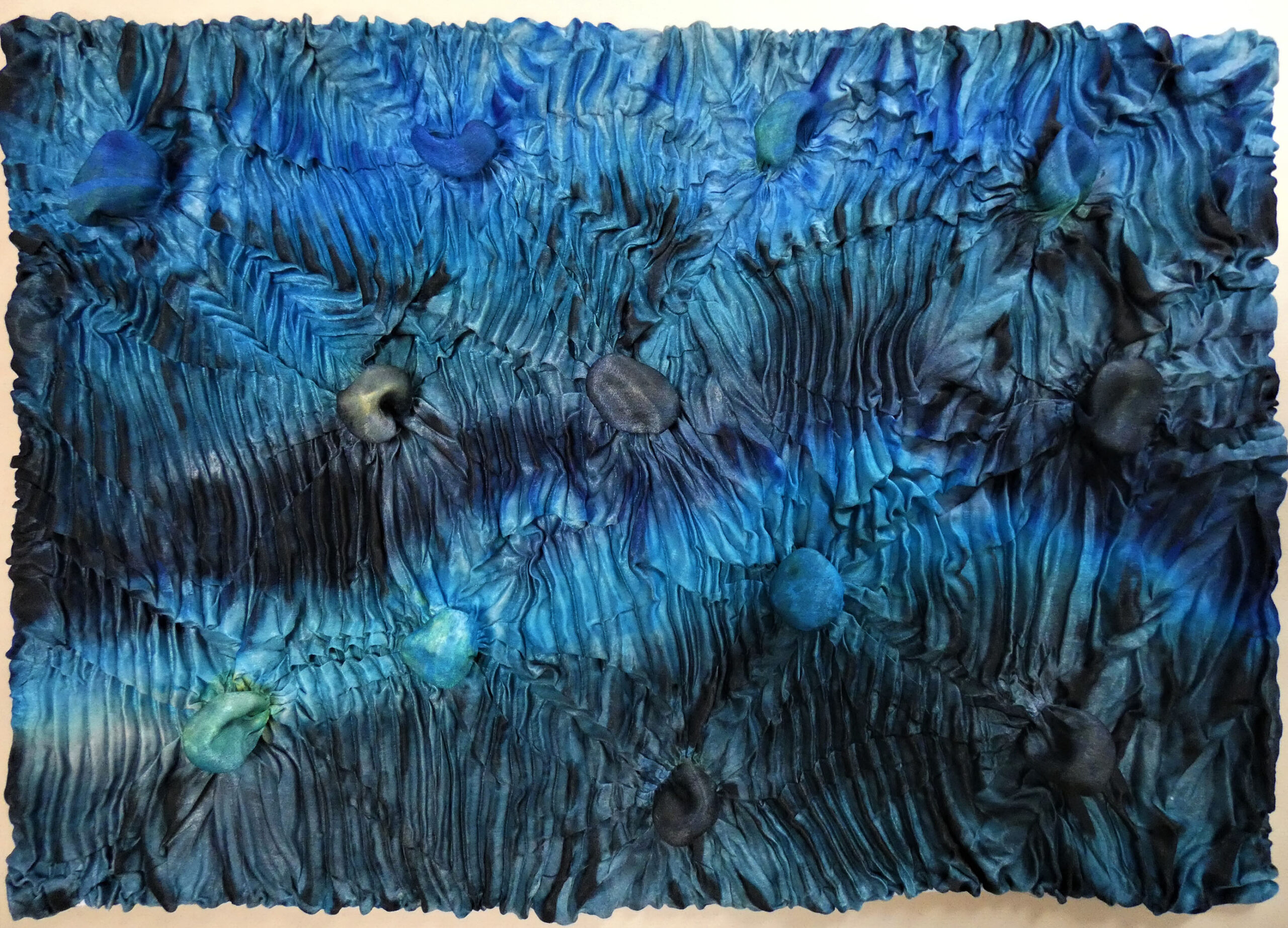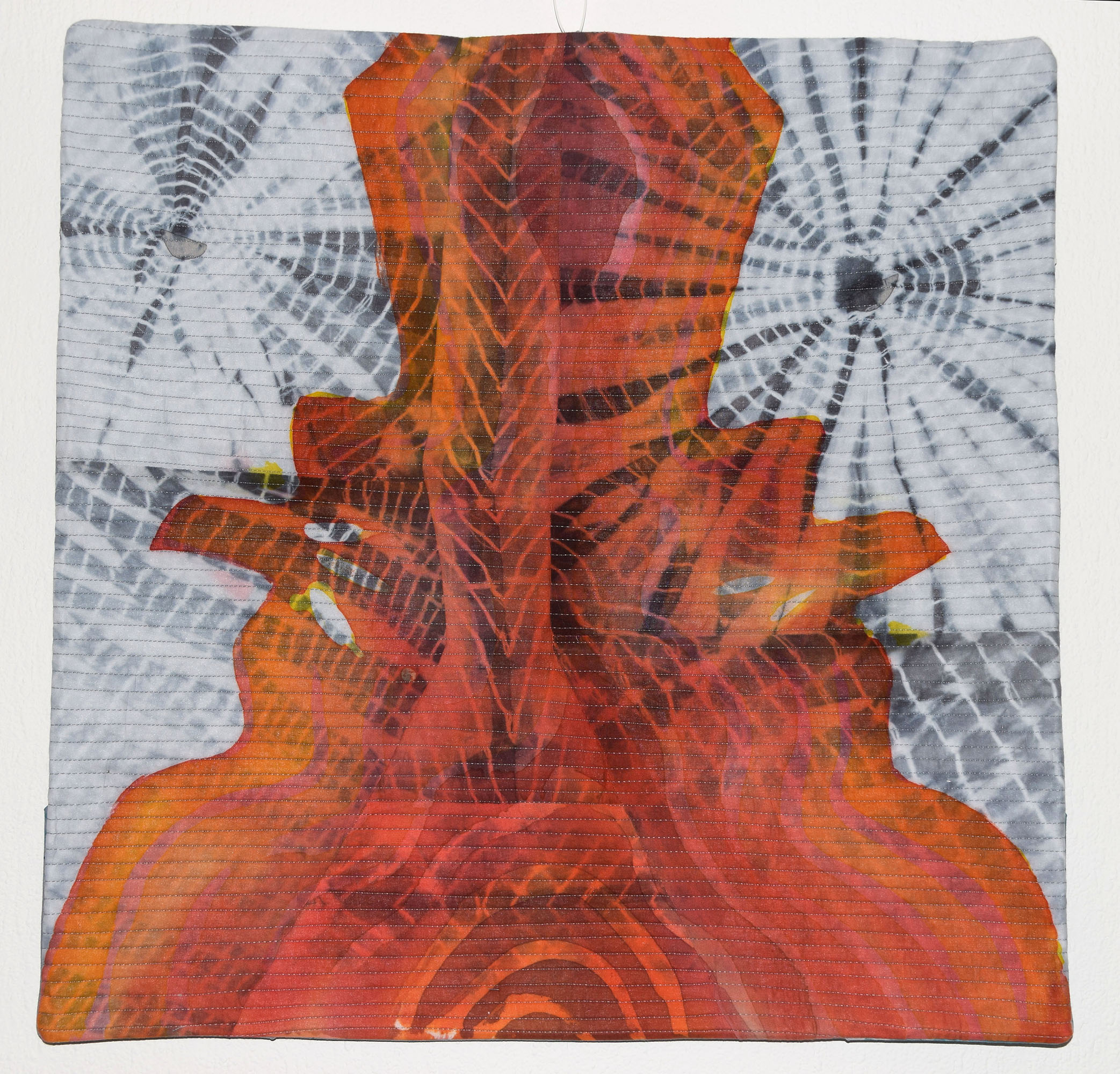 Shibori, patchwork, batik, quilting using cotton batiste, cotton and painted dyes (48 x 48cm)