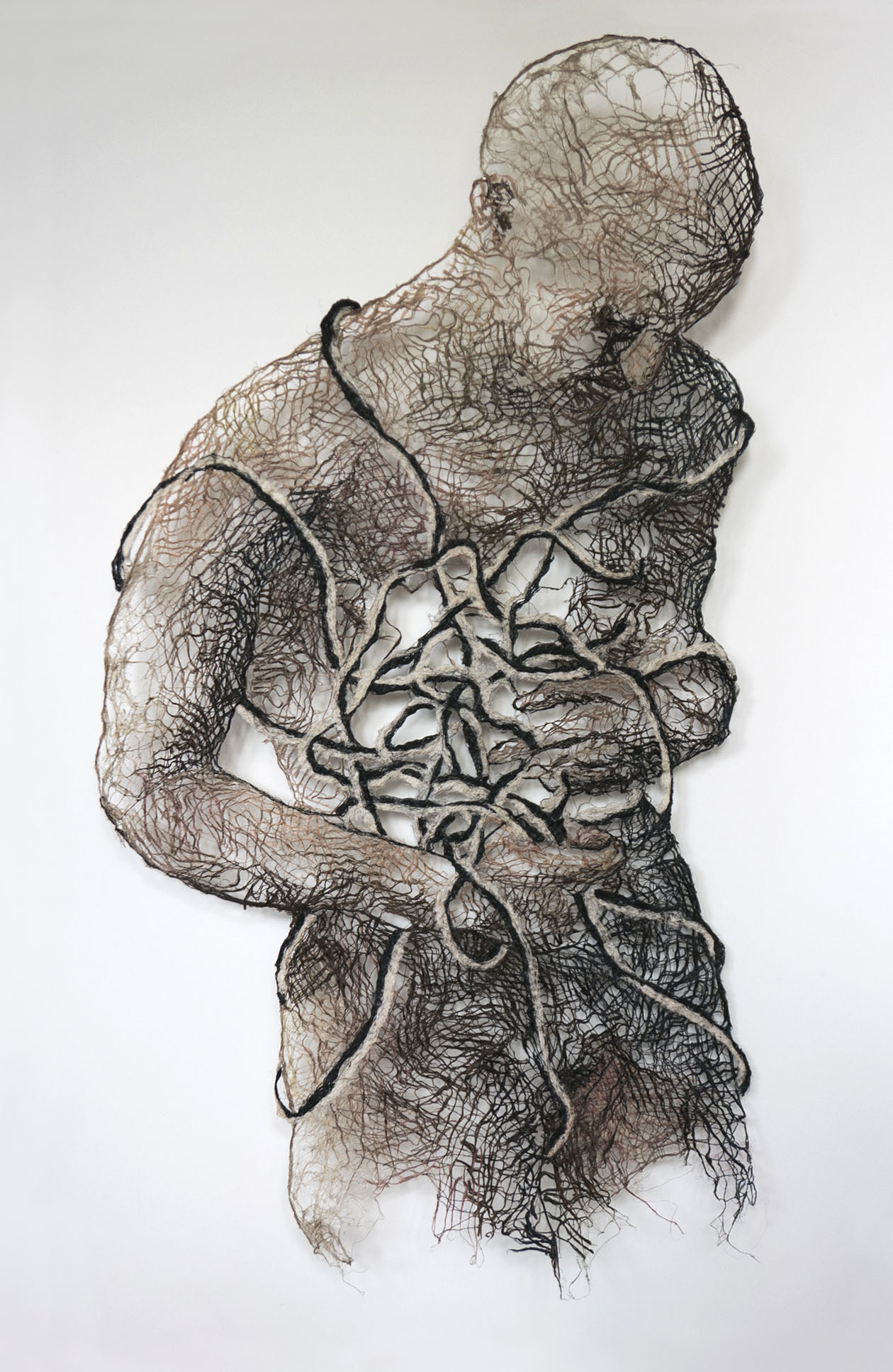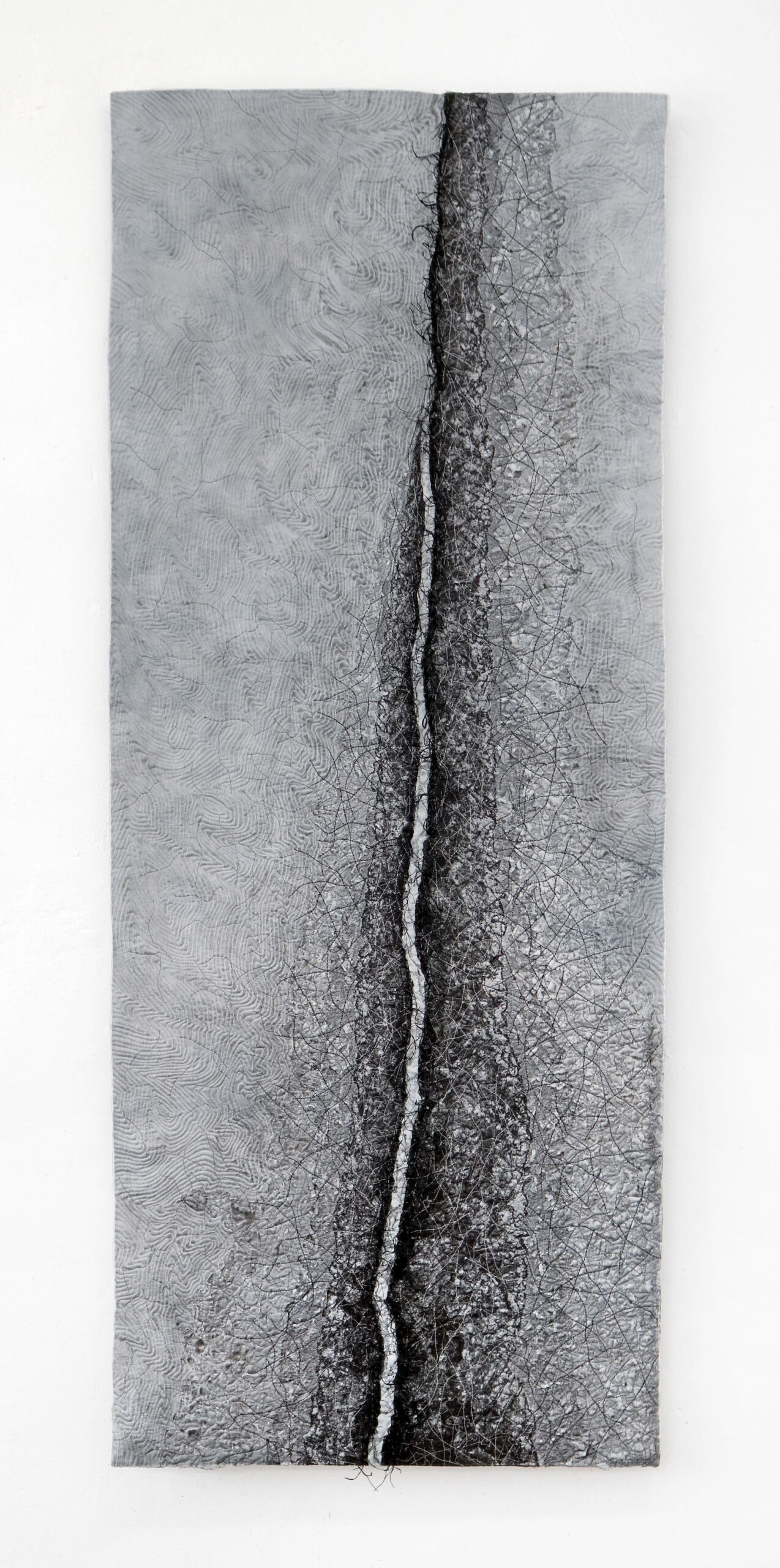 Hand and machine stitching, cotton and wool fiber (85 x 54cm)