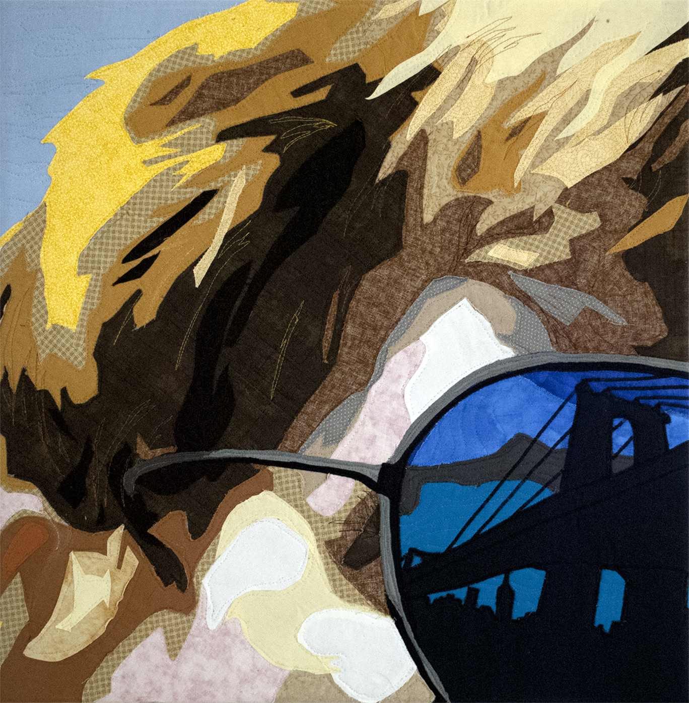 Cotton fabric, thread, batting, dandelion dye [50" X 50"]