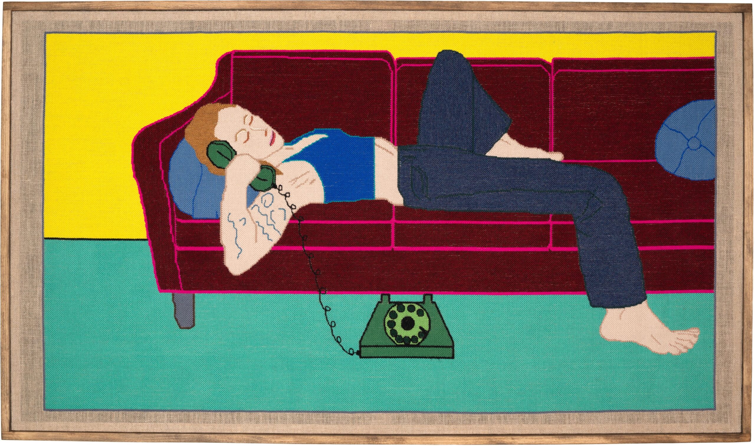 This is my response to the traditional reclining female figure in art. The male subject is oblivious to the female gaze, and quite engrossed in his basketball games.