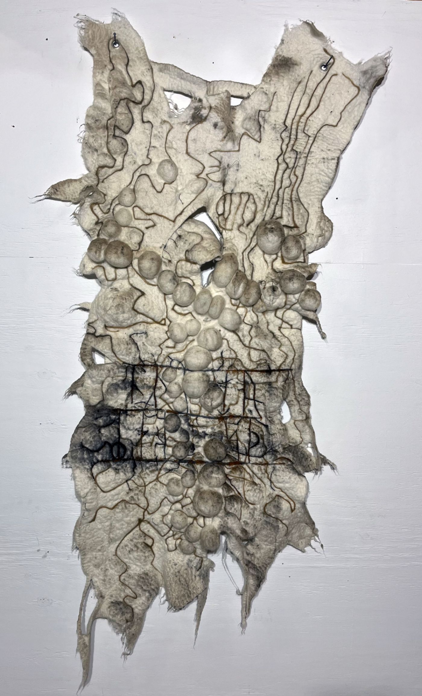 Using traditional craft processes such as feltmaking, weaving and papermaking, Fafnir Adamites creates sculptural and installation work that serves as a meditation on trauma, memory and the legacy of emotional turmoil inherited from past generations. Fafnir holds an MFA degree from the Fiber and Material Studies Department at the School of the Art Institute of Chicago and a BA in Photography and Women’s Studies from UMass Amherst. Fafnir is currently Assistant Professor in the Fiber Area at California State University, Long Beach and has taught workshops and intensives at Arrowmont School of Art and Craft, Snow Farm: The New England Craft Program and Women’s Studio Workshop.