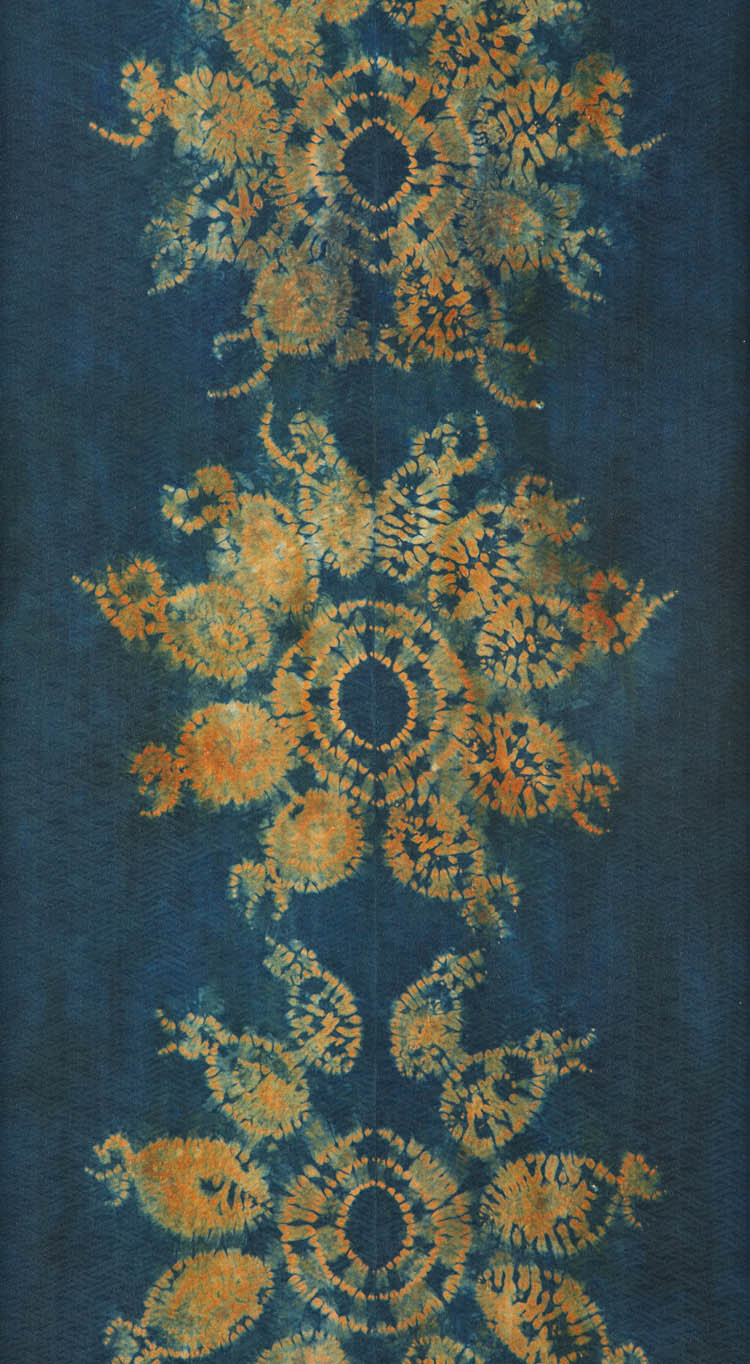 Silk, thread, indigo (52" x 14-1/2" x 0.25")