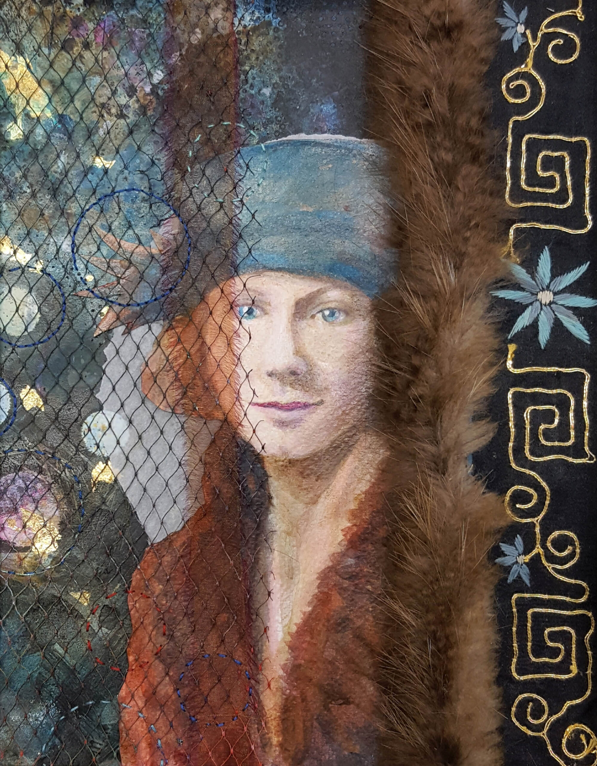 Paper, paint, ephemera, needlework, fur, cotton (17" x 14" x 1")