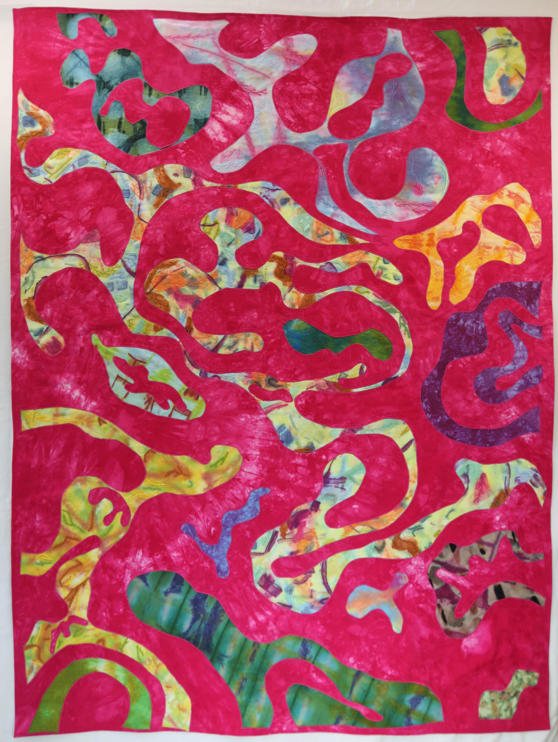 Hand dyed and painted cotton and linen (58" x 41" x 1/2")