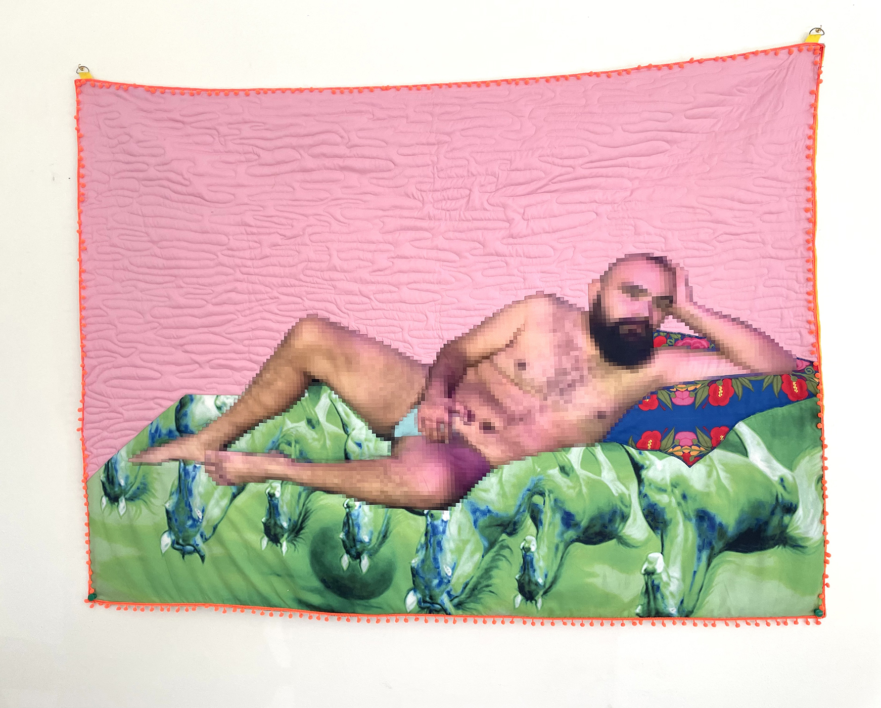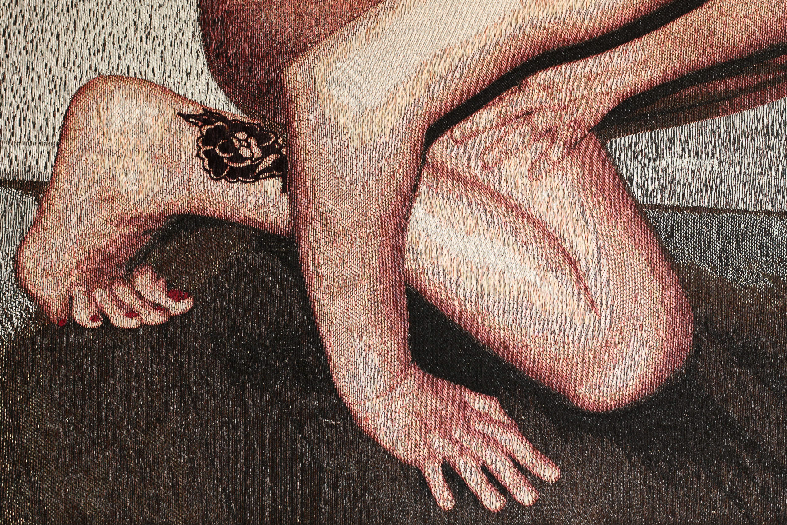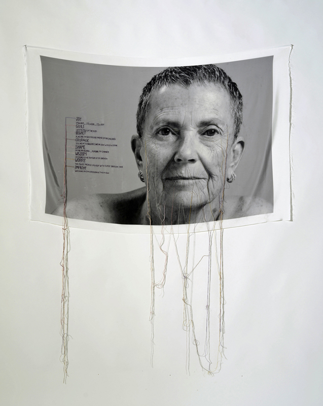 Hand embroidery, crepe de chine, photo transfer of the artist [40" x 60"]