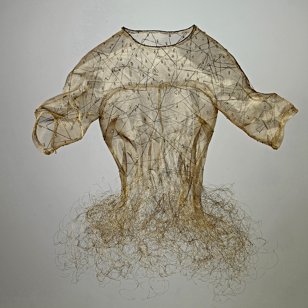 Brass wire mesh, linen thread, beads [30" x 32" x 20" x 30" 32" x 20"]