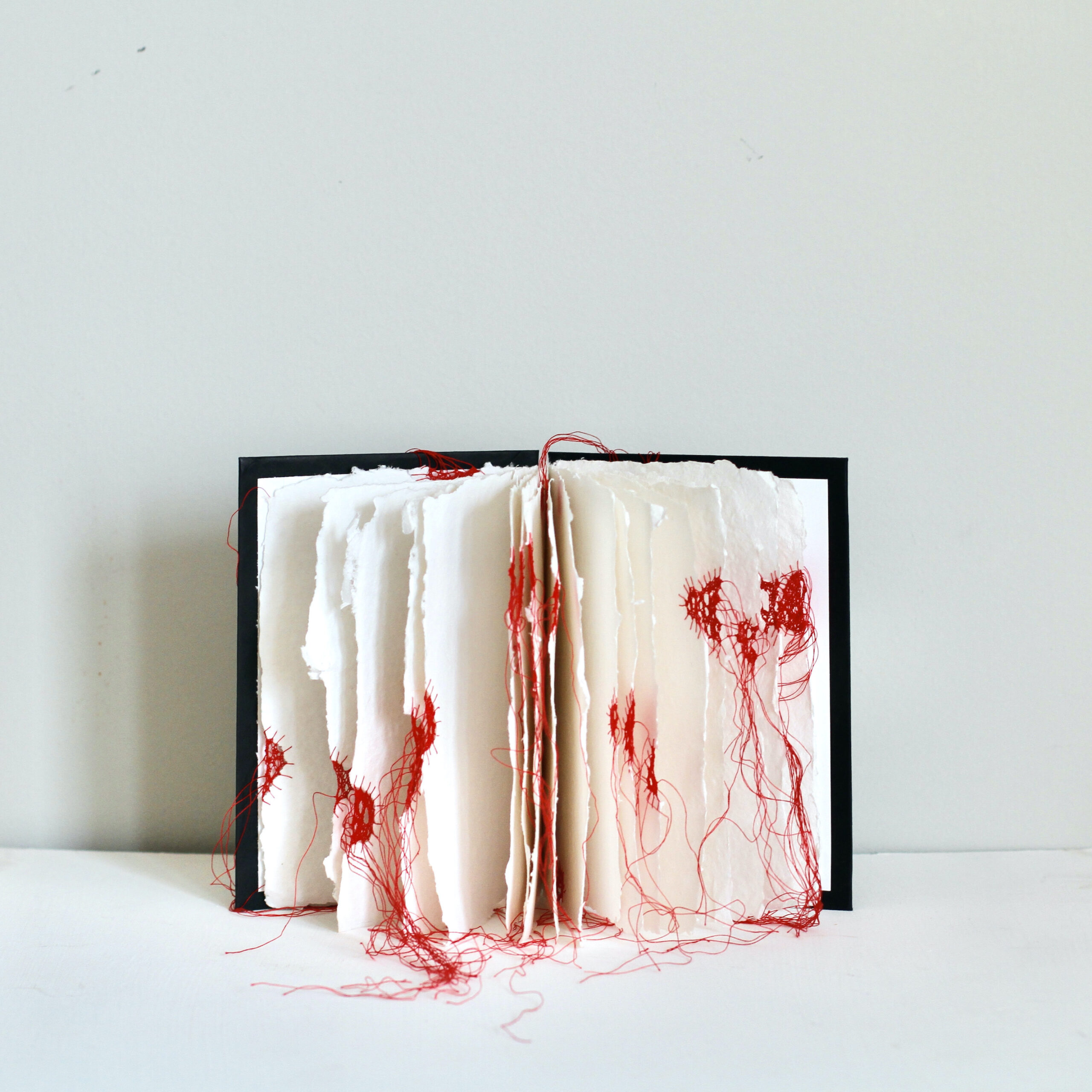 A feminine lineage described not by the presence of women, but by their absence- the women removed and replaced with thread, mull and obscured pages painting a picture of a lineage lost to time, voices not heard.