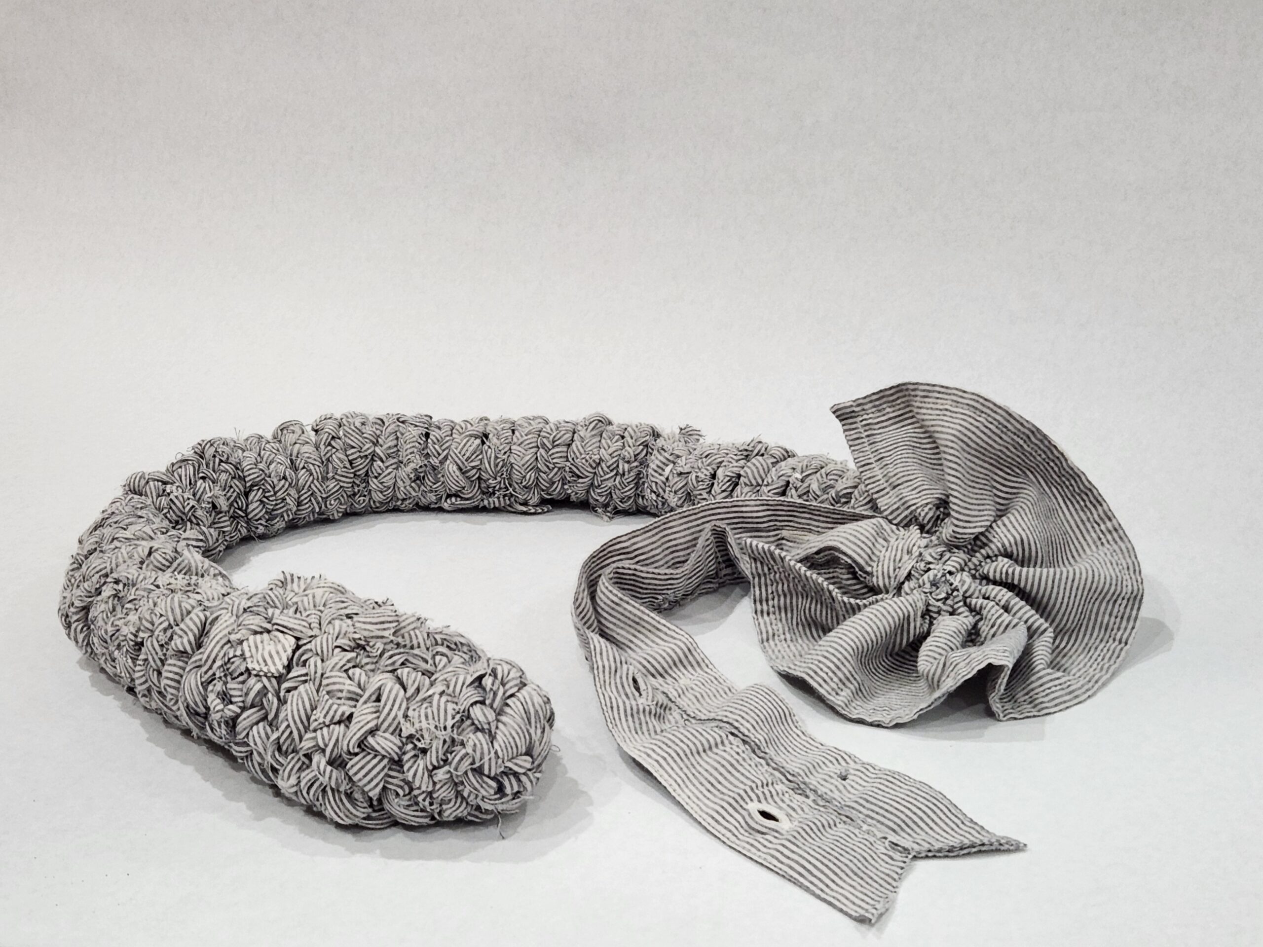 Rapunzel was a young girl fighting her way out of a castle that she knew was not the entirety of her world. This Brothers Grimm story beautifully illustrates the central premise of my work: to reflect on the struggles of women to be visible and seen as powerful and intelligent. The long hair of Rapunzel inspired me to create a long art object that goes as far up as it can go, past imagination.