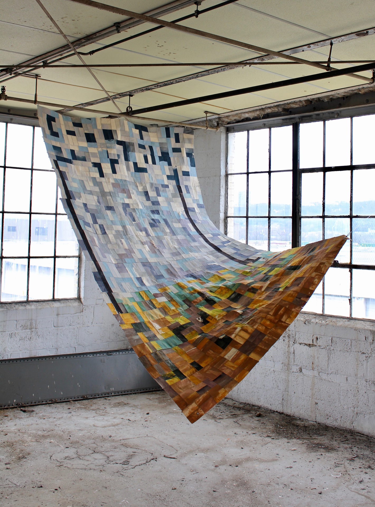 121" x 66" x .5," Acrylic, Canvas, Thread, Brass