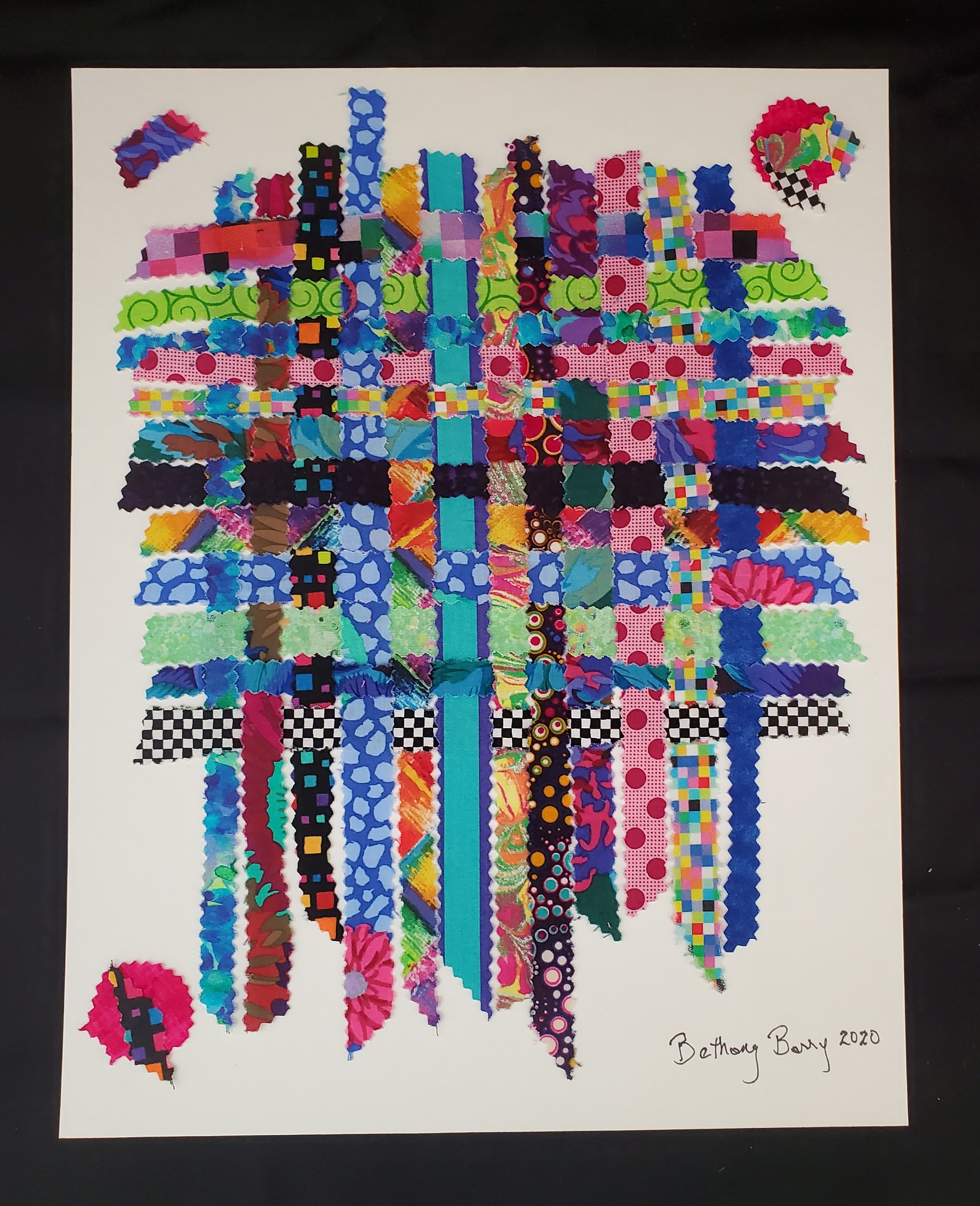 Cotton fabric, paper, weaving (11"H x 14"W)