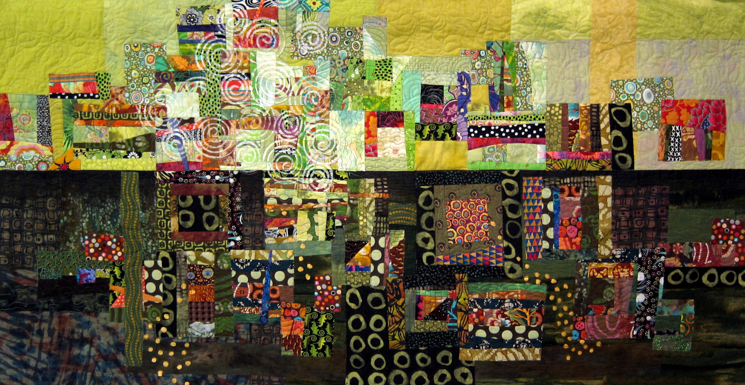 Cotton fabric, cotton batting, paint (30"H x 57"W)