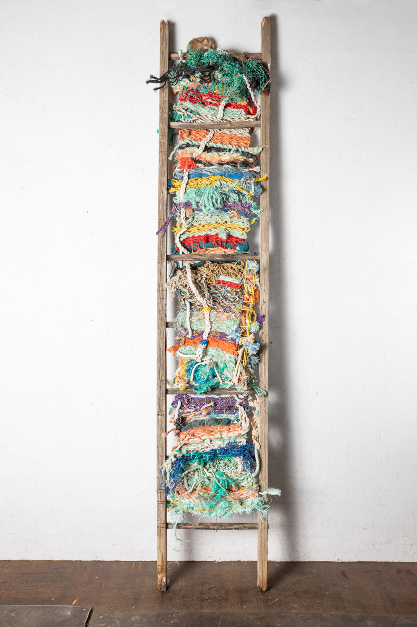 I walk the wrackline of the Massachusetts coastline, collecting debris. With each bag of marine trash that I bring home, I feel the precarious weight of the impact of pollution in the ocean. Every time I set out for these wrack line walks, I am faced directly with the dark reality of man made objects that clutter, tangle and threaten sea life. With my work I hope to raise awareness to the constant misuse of the ocean’s ecosystem by transforming pieces of sea debris into works of art and symbols of hope-- calling attention to the consequences of poisoning our oceans and encouraging a new commitment to action!