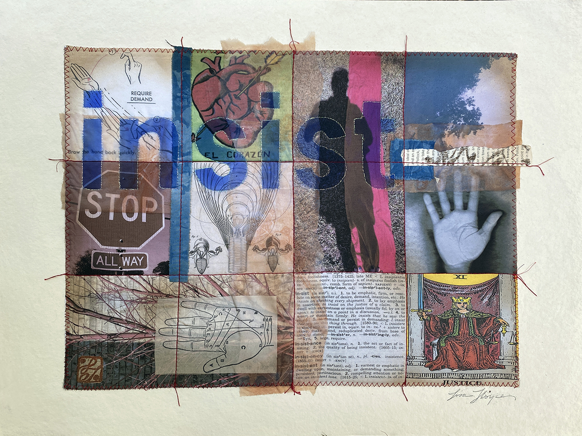 In 1994, I was abusing alcohol and spending too much time with unavailable men. Much of my daily angst was documented in my journal and years later, when I reread my words, I realized how much shame had consumed me. I removed the pages, applied ink and wax, cut the pages and then stitched them back together, not as they were but as something new. The process was healing, and allowed me to release the shame I felt and simply let the past be.