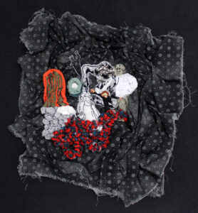 - Sabrina Kindervater (Fine Arts Center / Visual Arts: Fiber) Girl Breathes, 2019, fabric and thread, 16″ x 16″.
