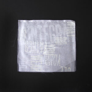 - Bethany Rahn (Indiana University Bloomington Eskenazi School of Art Architecture and Design / MFA in Graphic Design + Fibers) Remnants. 2019 Letterpress Printed Silk Organza 9’’x 10’’x .125’”