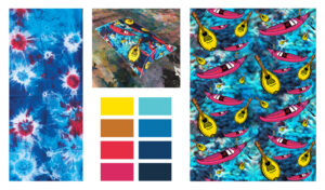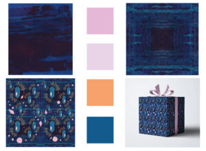 - Seoyoung Park (William Paterson University / Studio Art/Graphic & Interactive Design) Shibori Crystals; 2020; Fabric, Dye, Laser Digital Print, Paper; 12″H x 18″W.