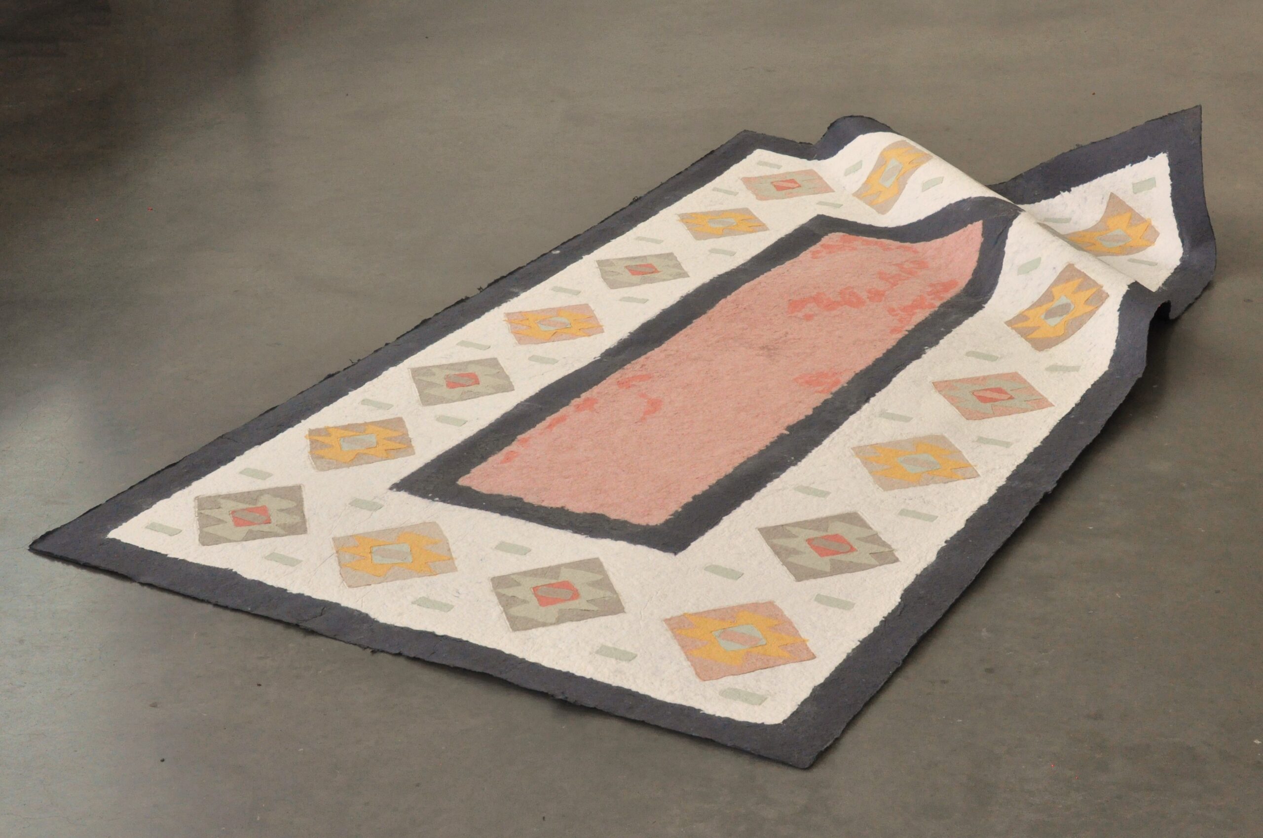 The Carpet is an exploration of identity and a performance of labour and care. Through patterning, tending to the pulp, and careful construction, this work questions diasporic identity and the way that memory – personal and cultural – can create a somewhat fragile basis for a sense of self. Photo by Eli Bjedov-Stankovic.