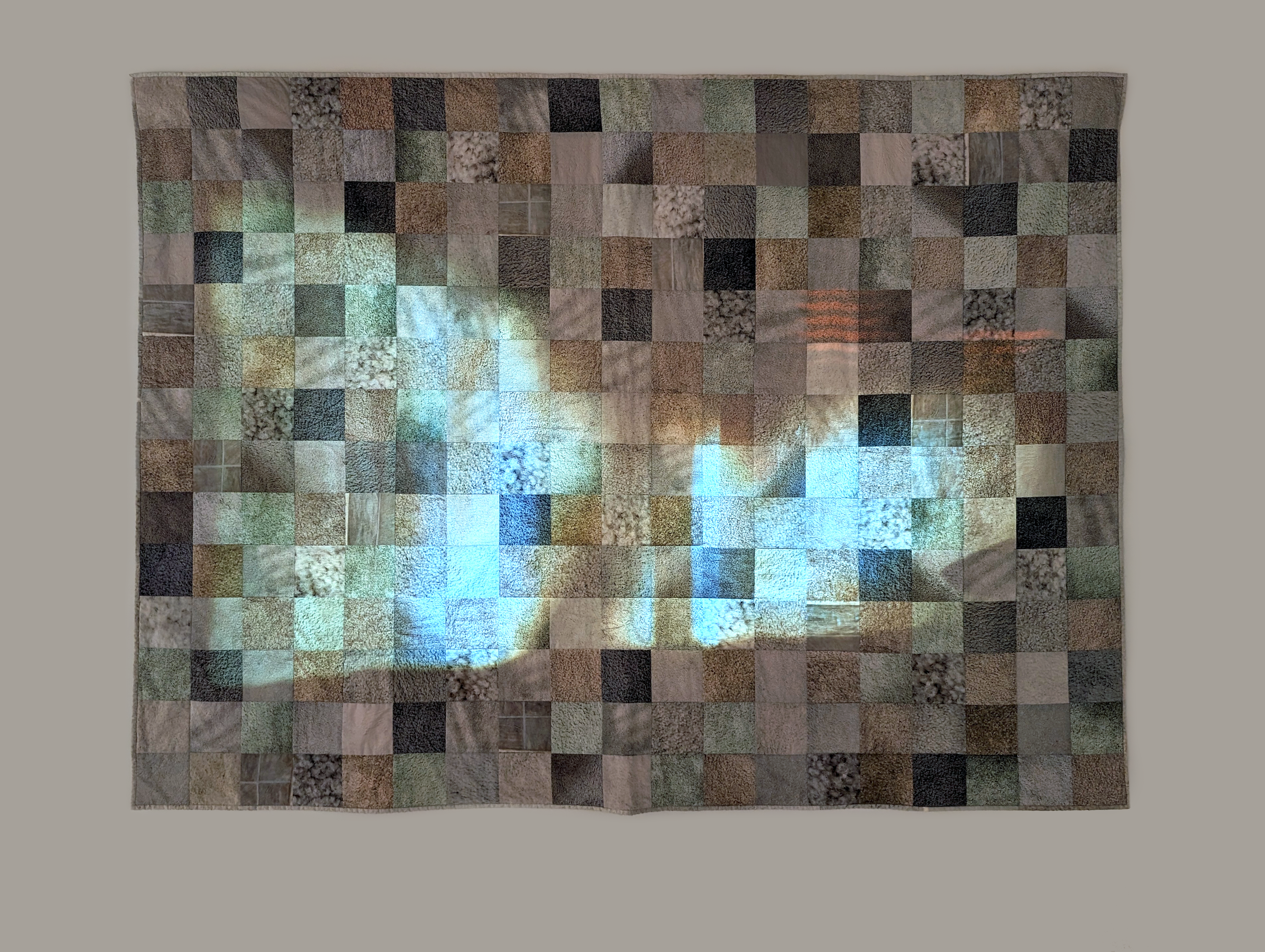 Quilted dye sublimation print on cotton fabric and video projection [60" x 80"]