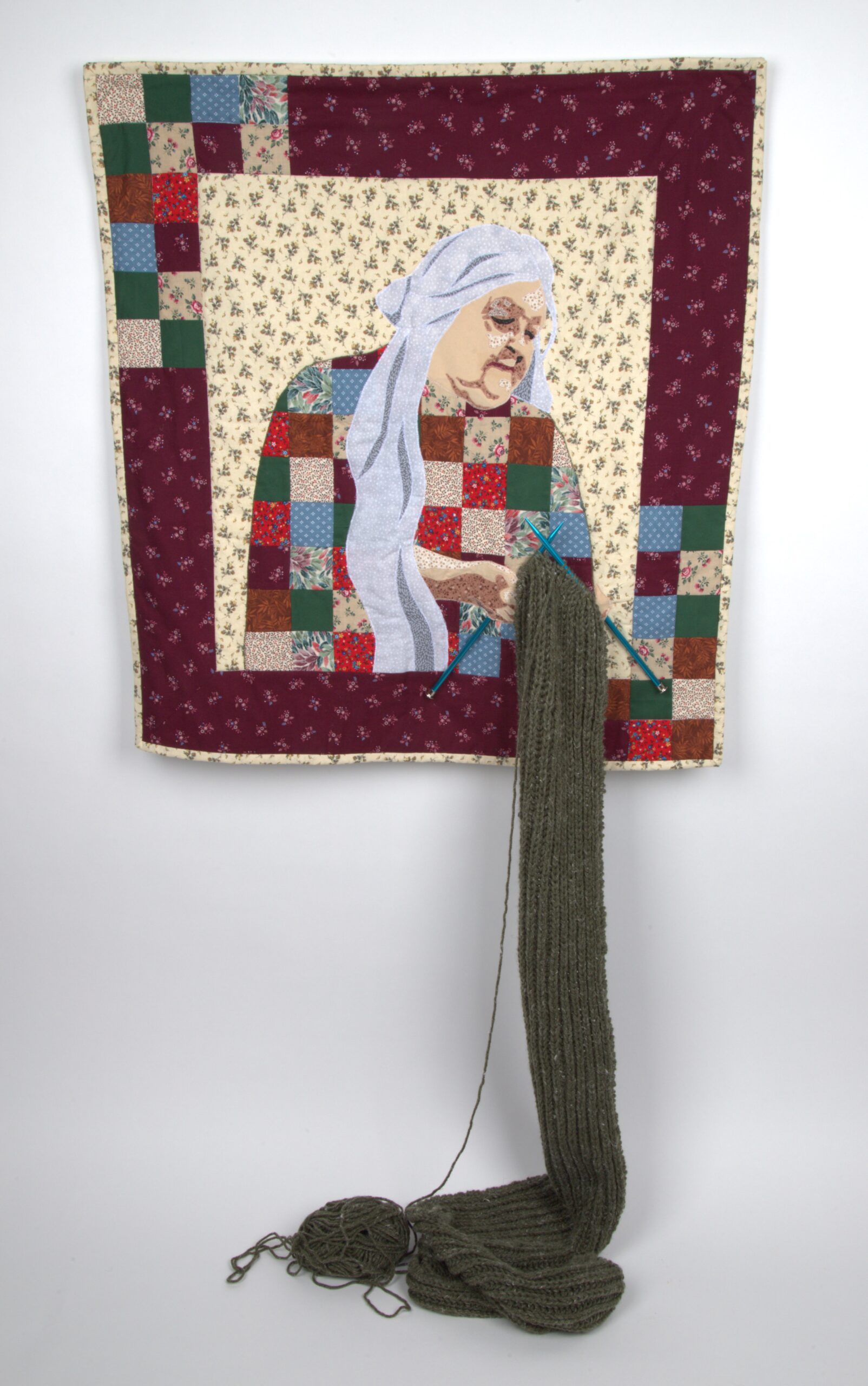 Essence of Grandma is about the graceful aging of women in the winter of their lives and the passing on of knowledge to the next generation. The quilted grandmother is a picture of my own grandmother who taught me how to quilt, pouring her knowledge into me.
