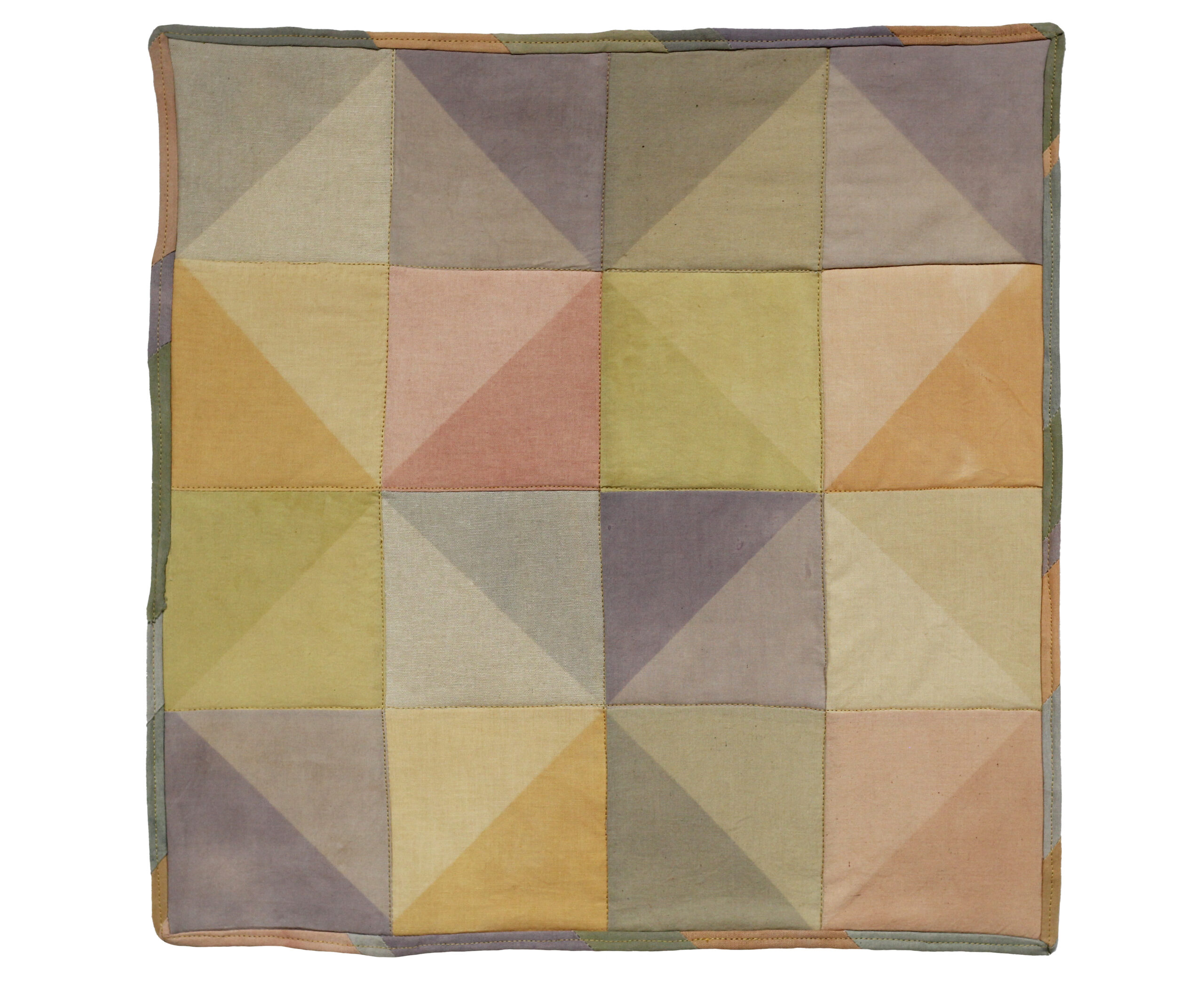 Window Quilt No. 3 features the lightfastness of natural dyes in a visually interesting way. By revealing some of the fabric to the sun I was able to then create an art quilt with a geometric pattern and a wider range of colors.